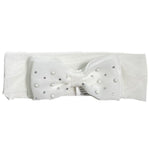 Questa delicata fascia in tulle elasticizzato è arricchita con un grazioso fiocco in organza con svarowsky e mezzeperle. Perfetta per completare il look della neonata, offrendo un tocco di eleganza e raffinatezza a ogni outfit. Ultimo dettaglio per un outfit impeccabile.