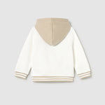 Felpa manica lunga per neonato. Colletto con cappuccio. Chiusura con bottoni a pressione sulla spalla che facilitano la vestibilità del capo. Elementi decorativi: Serigrafia (print).