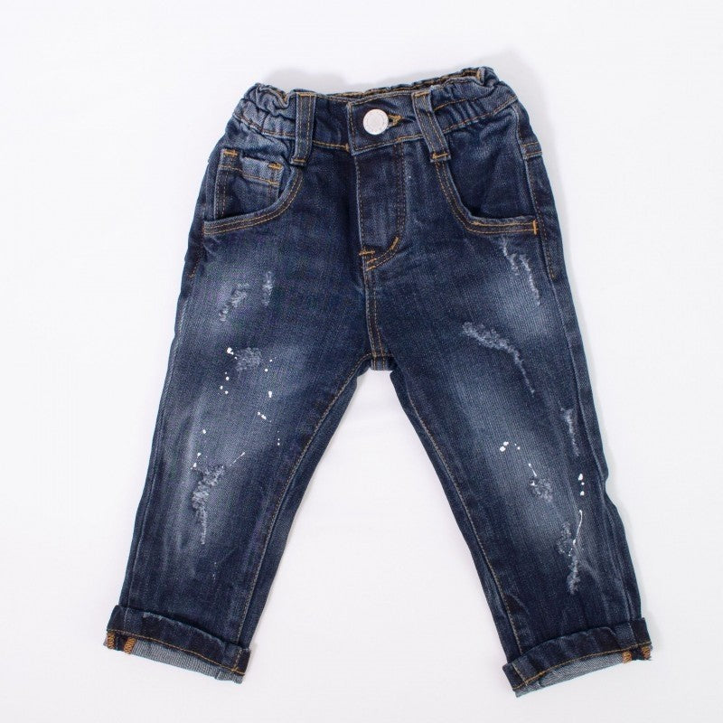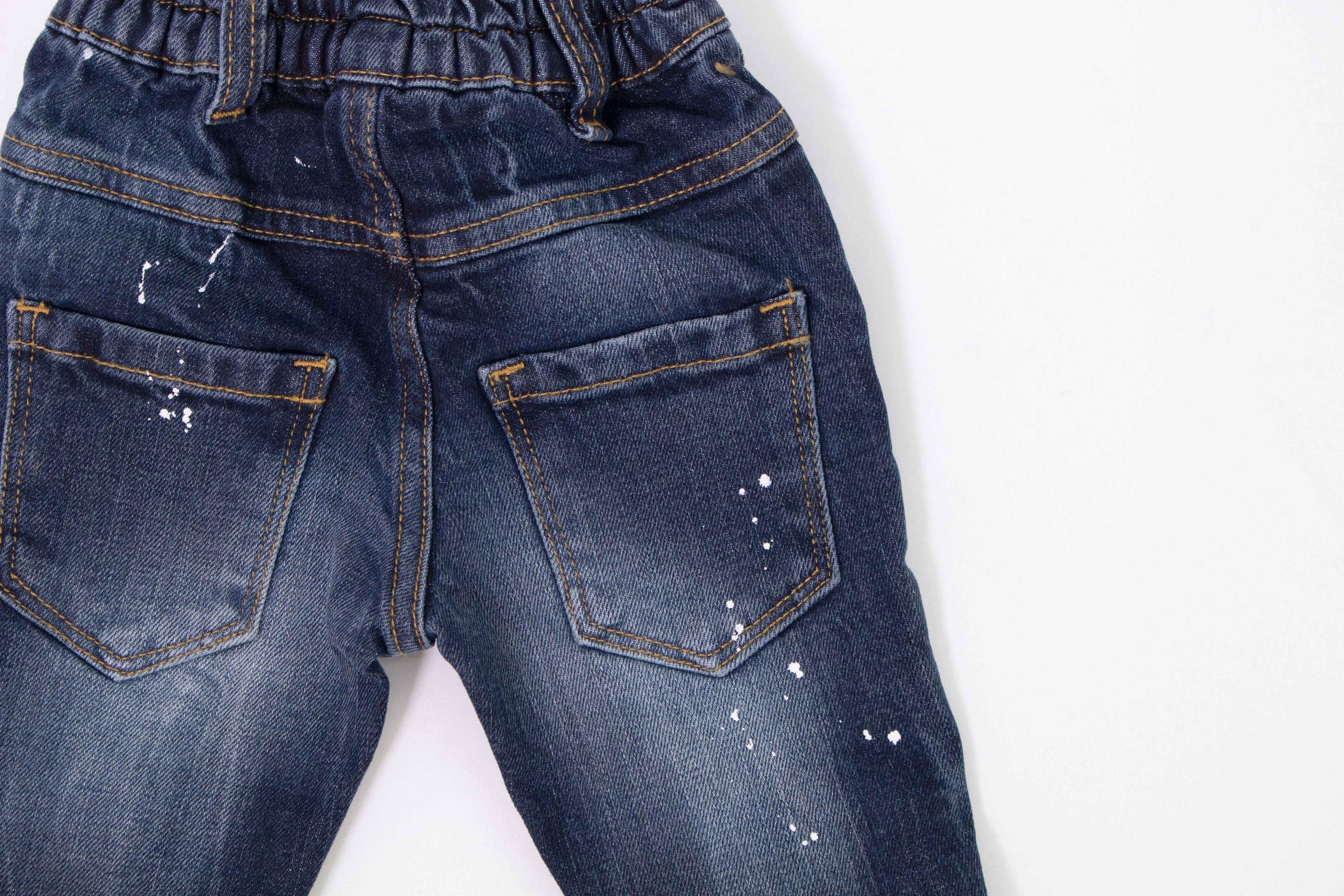 Long Blue Jeans With Rips and Shades. White Fake Sketches on Both Sides. Elastic waist.