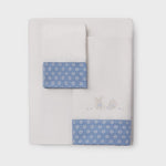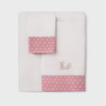 Delicato coordinato lenzuola per la culla del tuo/a piccolo/a. Costituito da lenzuolo inferiore con angoli, lenzuolo superiore e federa.