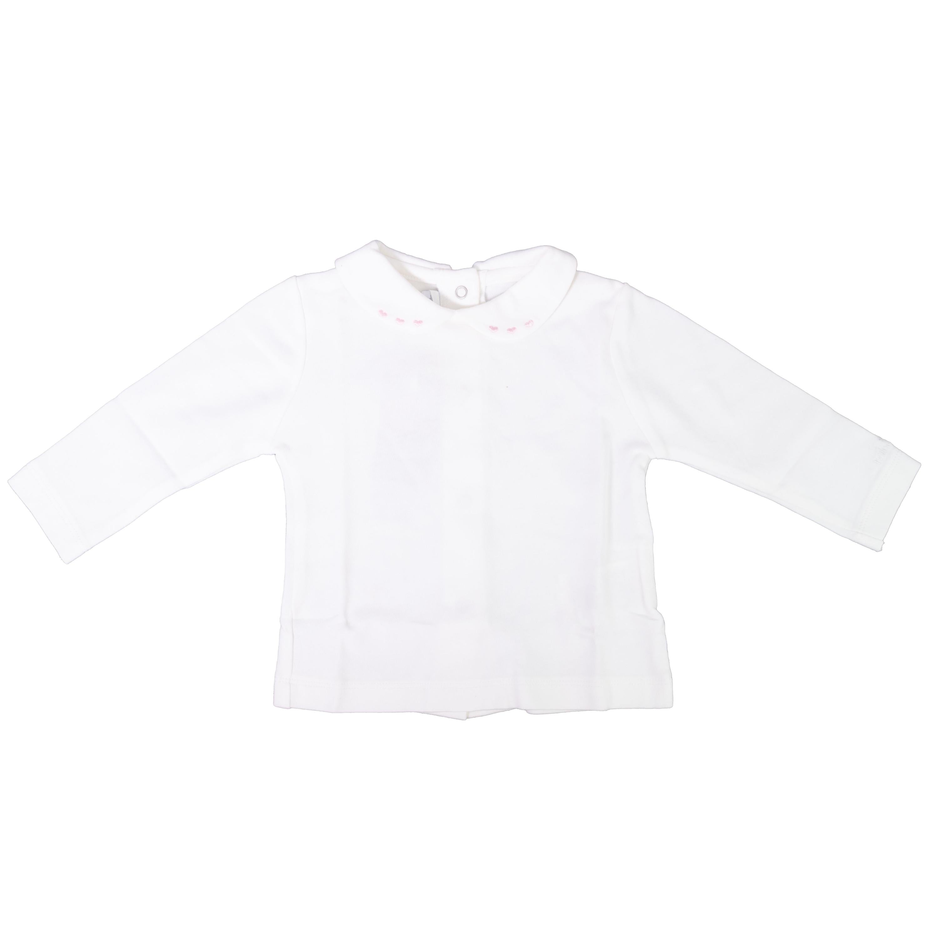 Warm Cotton Sweater with Collar and Hearts Embroidery. Back Closure With Snap Buttons. Solid Color