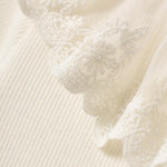 Maglia in caldo cotone millerighe, con collo volant in pizzo.