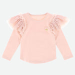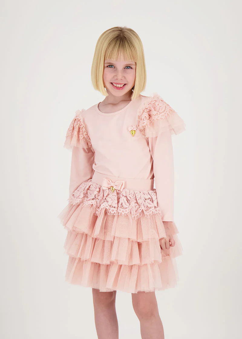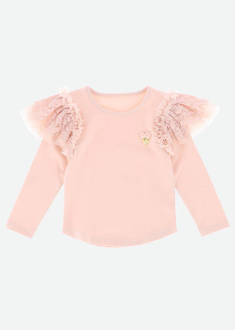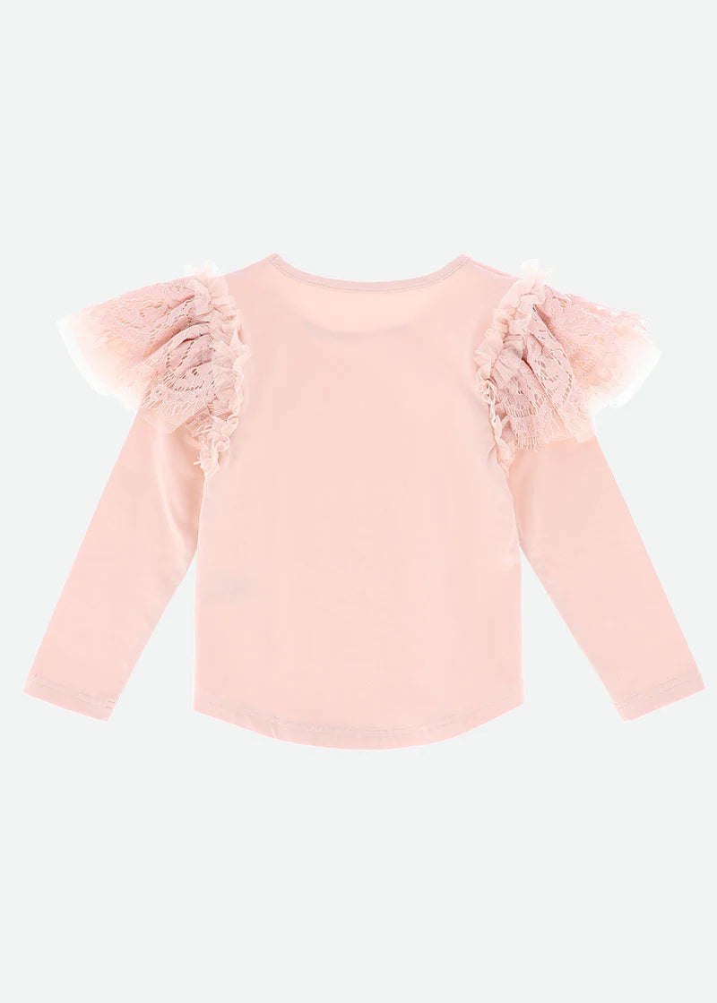 Questa maglia maniche lunghe Bambina ANGEL'S FACE ANABELLE è realizzata dalle nostre sapienti mani con un morbido misto cotone elasticizzato. È arricchita da dettagli in pizzo rosa e tulle, maniche lunghe con tulle e un collo rotondo classico. Un elegante orlo asimmetrico e un iconico fiocco firmato Angel's Face impreziosiscono il top, completato da un ciondolo a cuore dorato sul petto. Esterno 95% cotone 5% elastan. Finiture 1: 100% poliestere. Finiture 2: 75% cotone 25% nylon. Lavare in lavatrice a 30*.