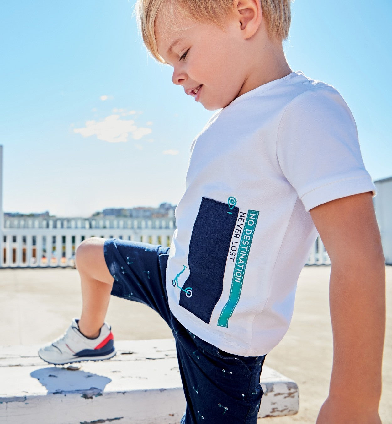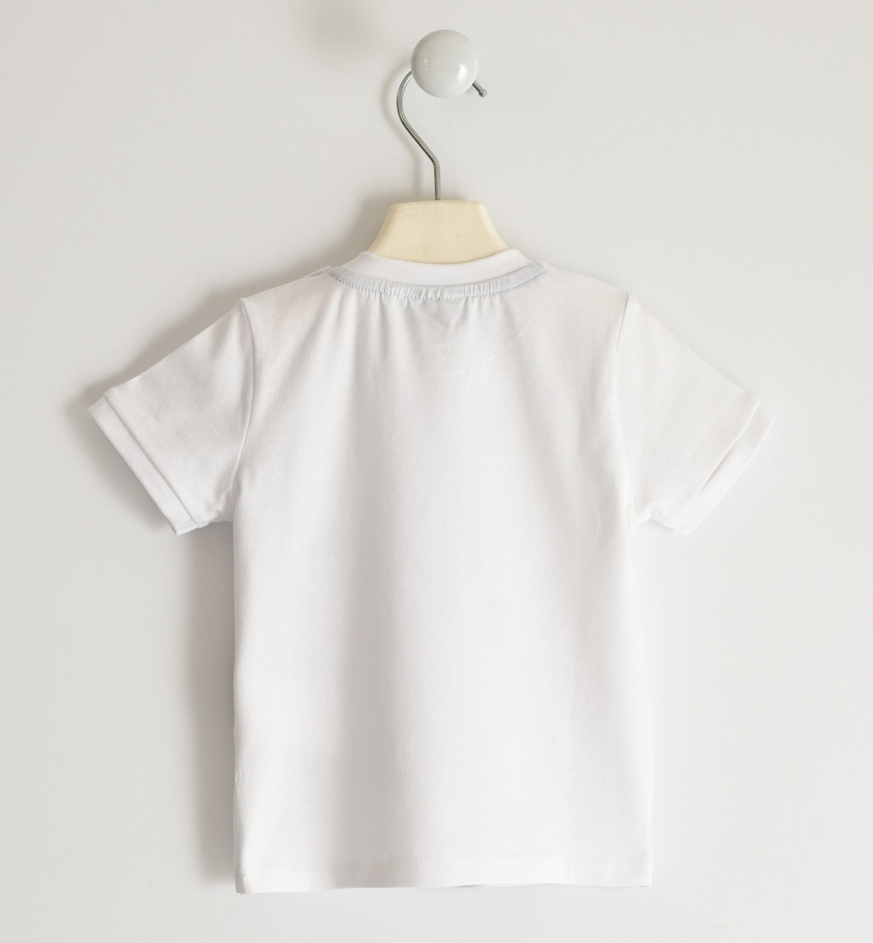 Half Sleeves Cotton Sweater With Blue Application on the Front.