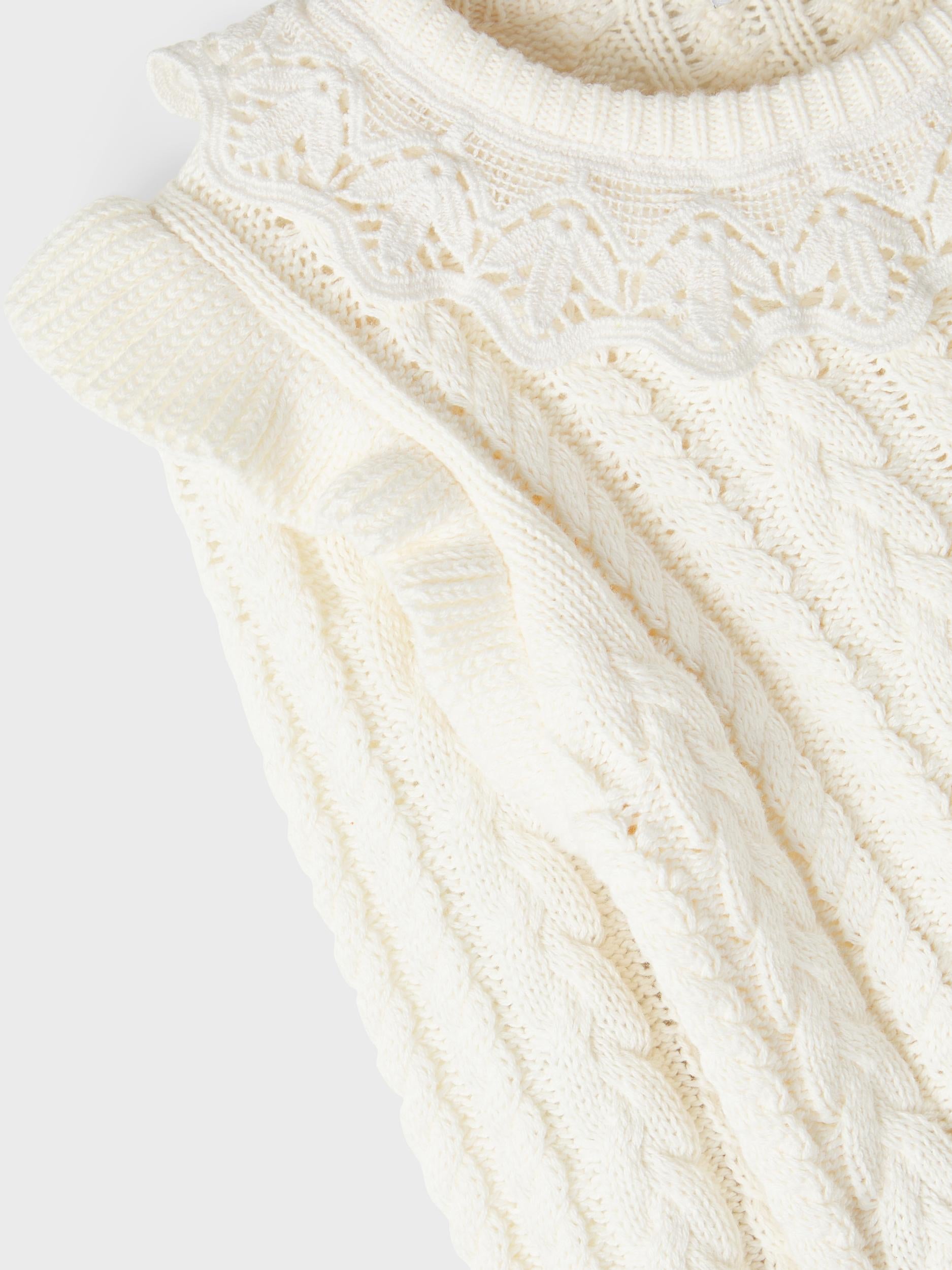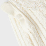 Maglioncino in caldo cotone organico, in tinta unita panna, con trecce e collo rouche.