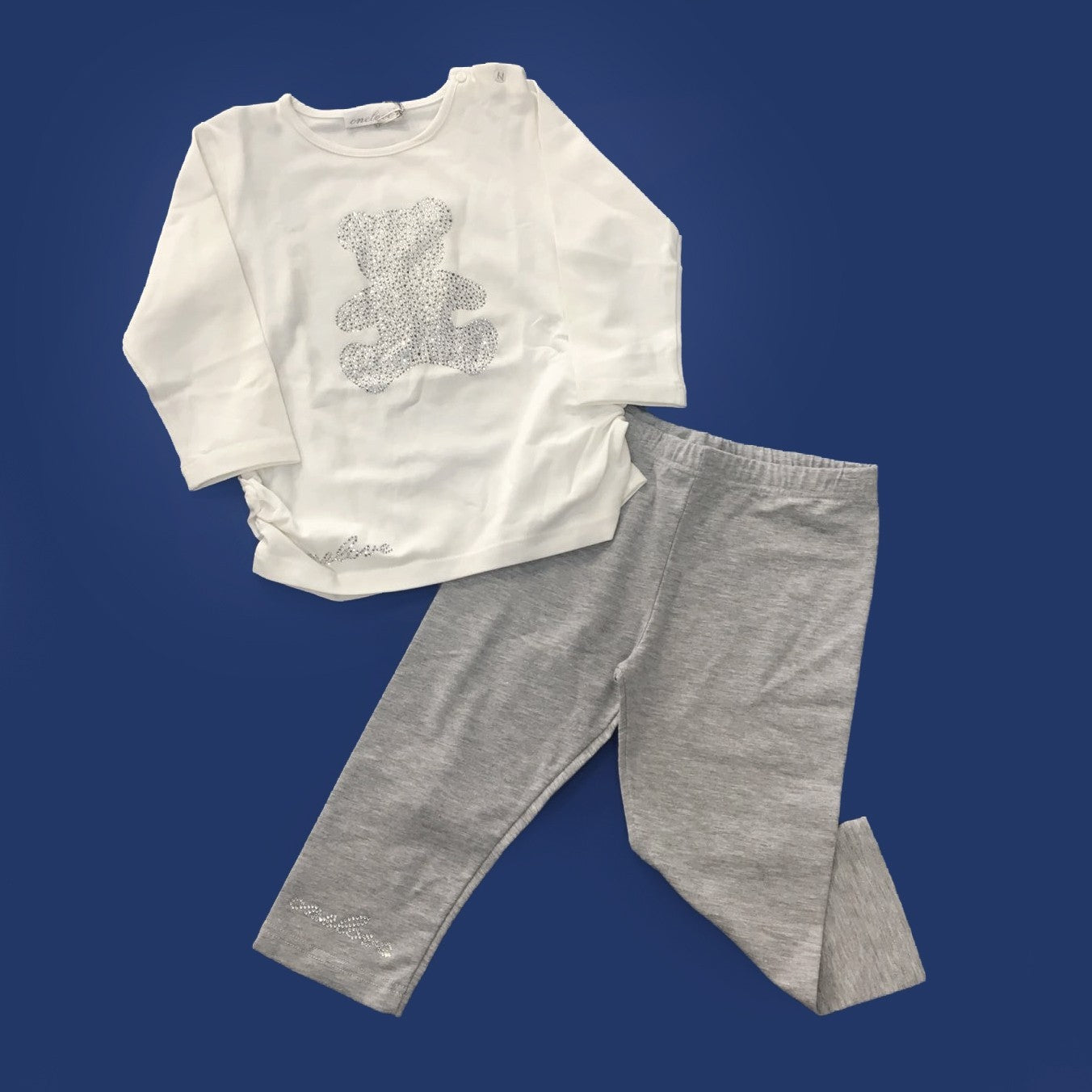 Maxi sweater in warm white cotton long sleeves with teddy bear-shaped rhinestone applications on the front