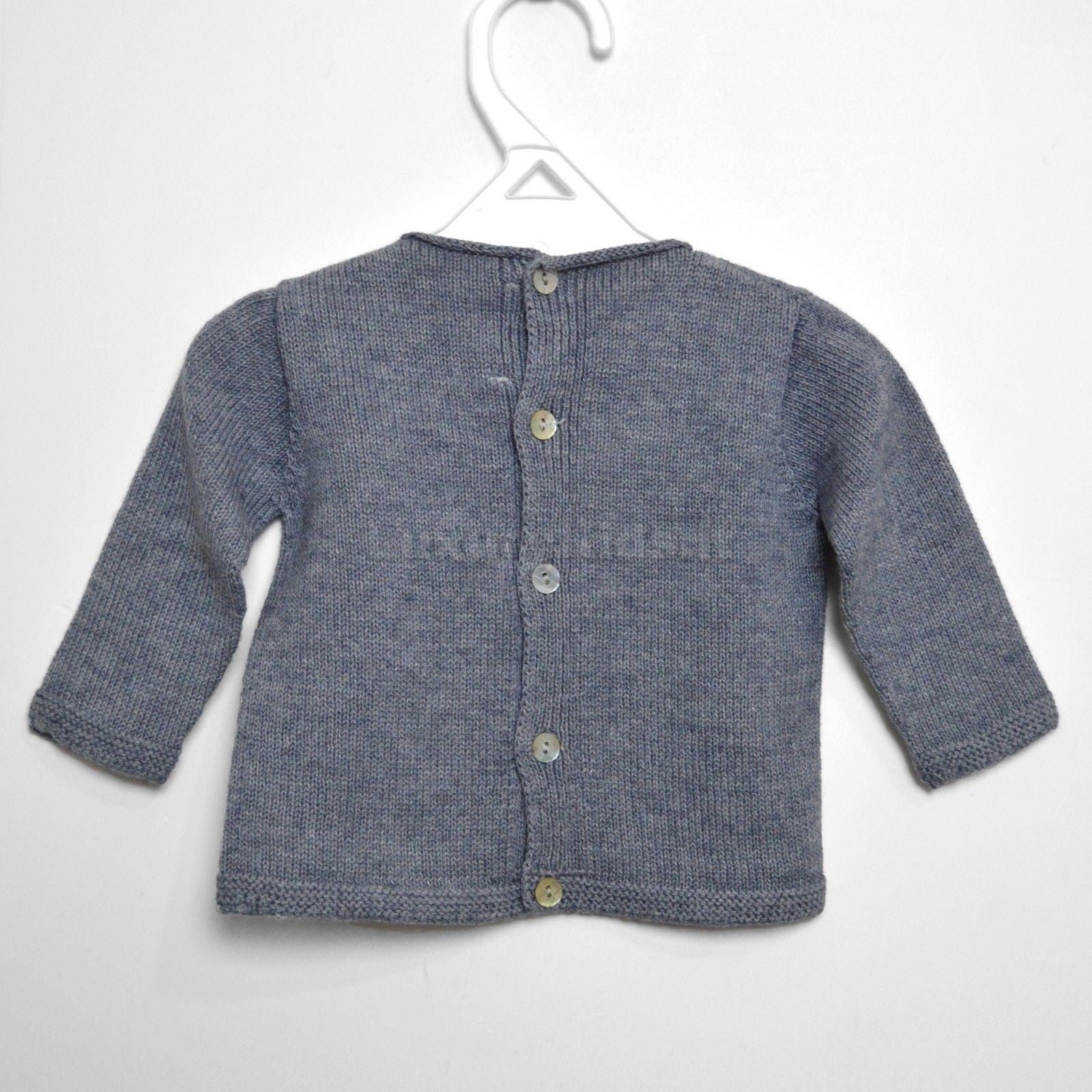 -Elegant warm blue cotton sweater in solid color with buttoning on the back