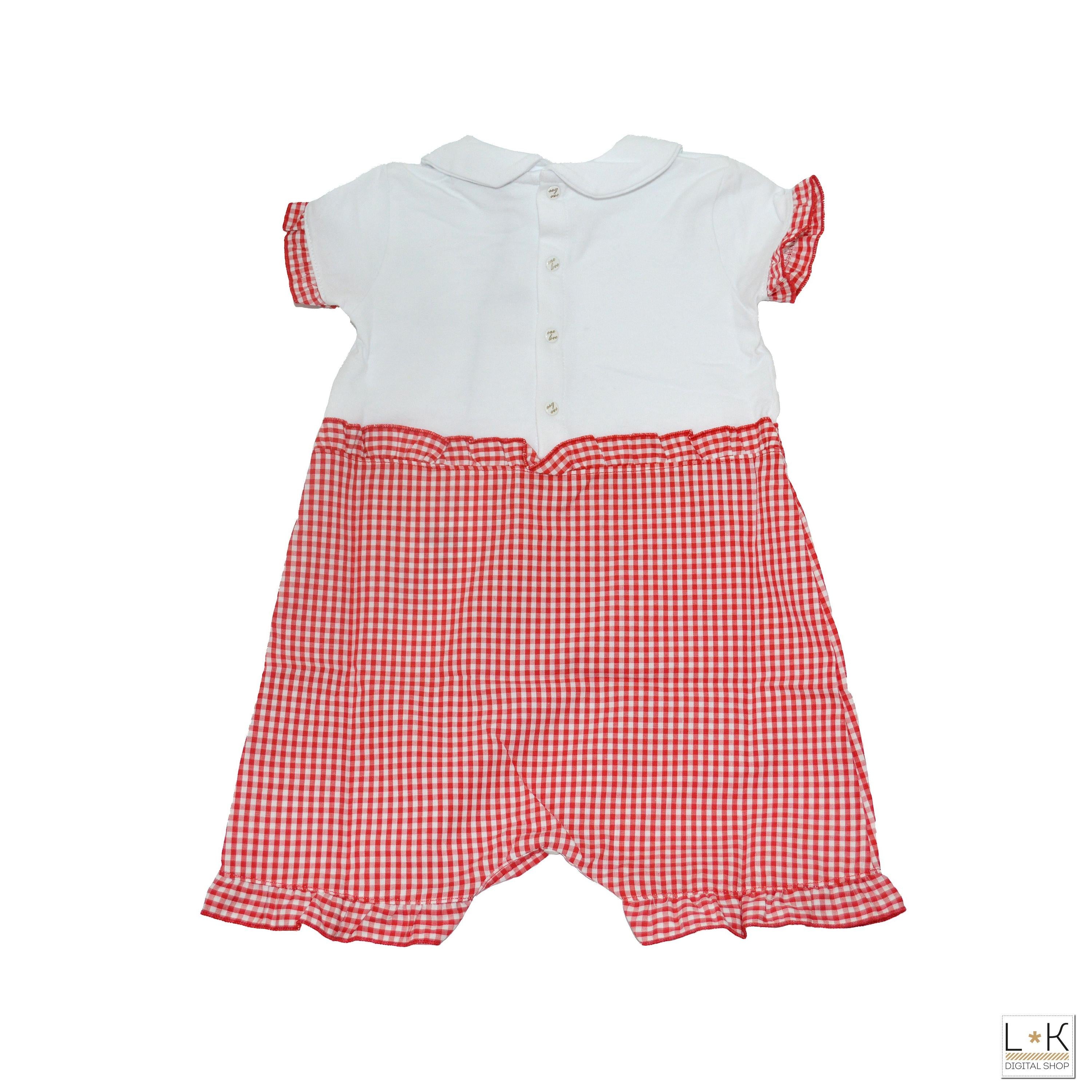 Pagliaccetto a Quadretti in Cotone Rosso Neonata Onelove 315J03 - ONE LOVE - LuxuryKids
