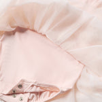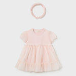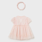 Pagliaccetto manica corta per neonata. Chiusura con bottoni a pressione nell'interno cosce per agevolare la vestibilità. Chiusura con bottoni sulle spalle. Confezione in tulle leggero e vaporoso. Elementi decorativi: ricamo.