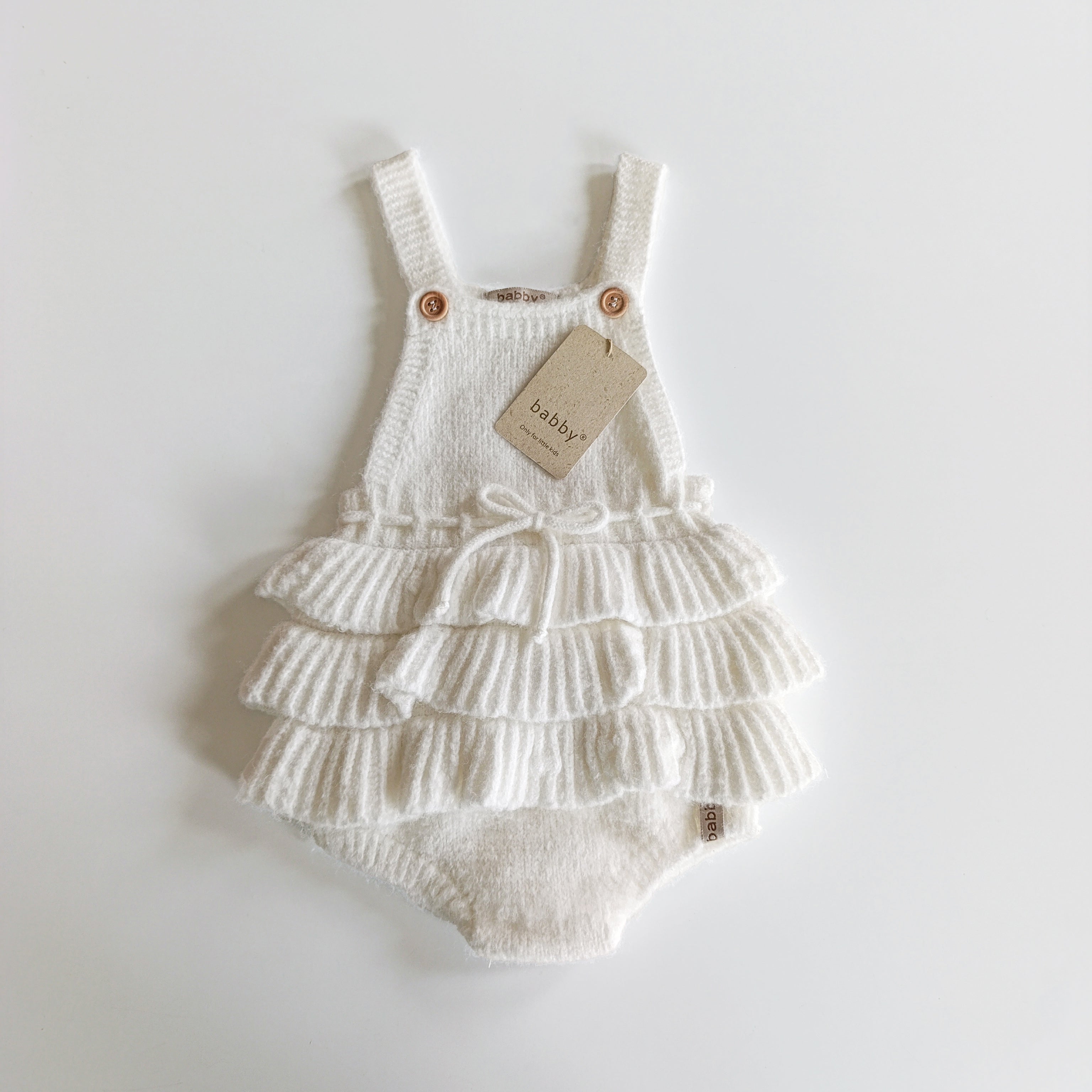Pagliaccetto in morbido cotone caldo, perfetto per le neonata che desiderano comfort e stile. Il capo presenta eleganti rouches nella parte inferiore, un dettaglio sofisticato che lo rende particolarmente alla moda. La qualità del tessuto garantisce morbidezza sulla pelle delicata del bambino, mentre il design ricercato lo distingue dai capi tradizionali. Ideale per occasioni speciali o per il quotidiano, questo pagliaccetto combina praticità e eleganza in un'unica soluzione.