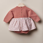 Shorty a maniche lunghe lavorato a maglia in morbida lana merino extra fine, ottimo per neonati. La maglietta corta a maniche lunghe TONES OF GARDENS IN WINTER è lavorata a punto ajour con un affascinante dettaglio della gonna bombazine floreale. Si chiude dietro e tra le gambe con bottoni in legno. Realizzato con la tecnologia Wholegarment, questo capo è privo di cuciture per il massimo comfort del tuo bambino.