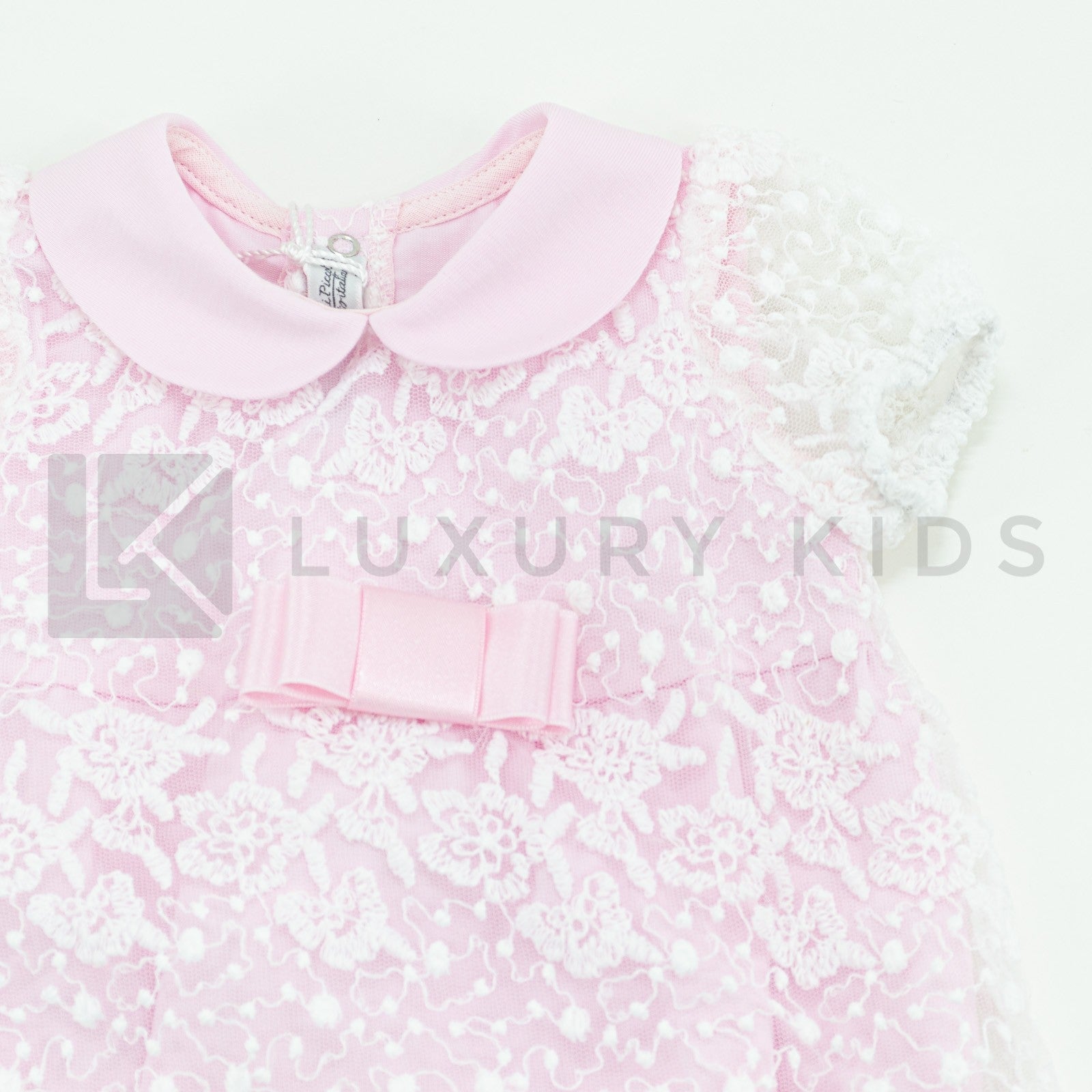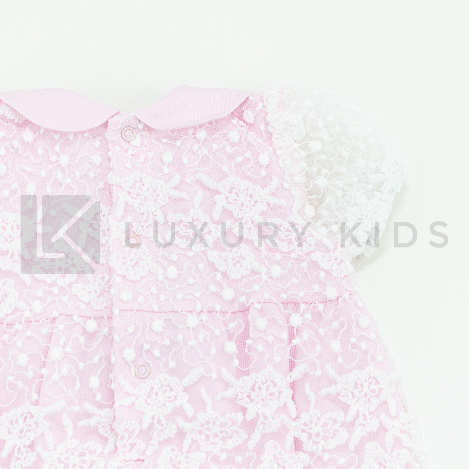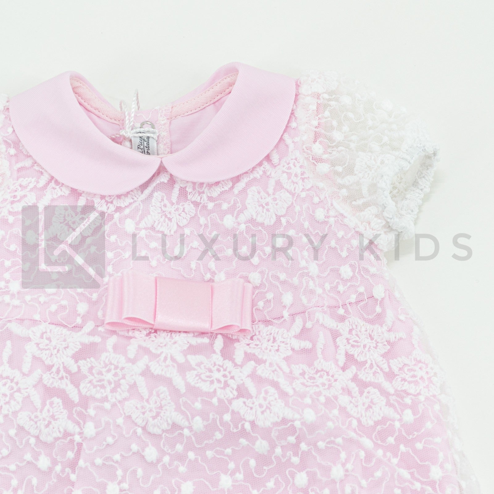 Pagliaccetto Mezza Manica In Cotone Rosa Con Tulle Ricamato Bianco La Sartoria Dei Piccoli LP756 - LA SARTORIA DEI PICCOLI - LuxuryKids