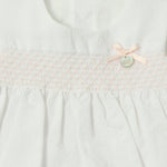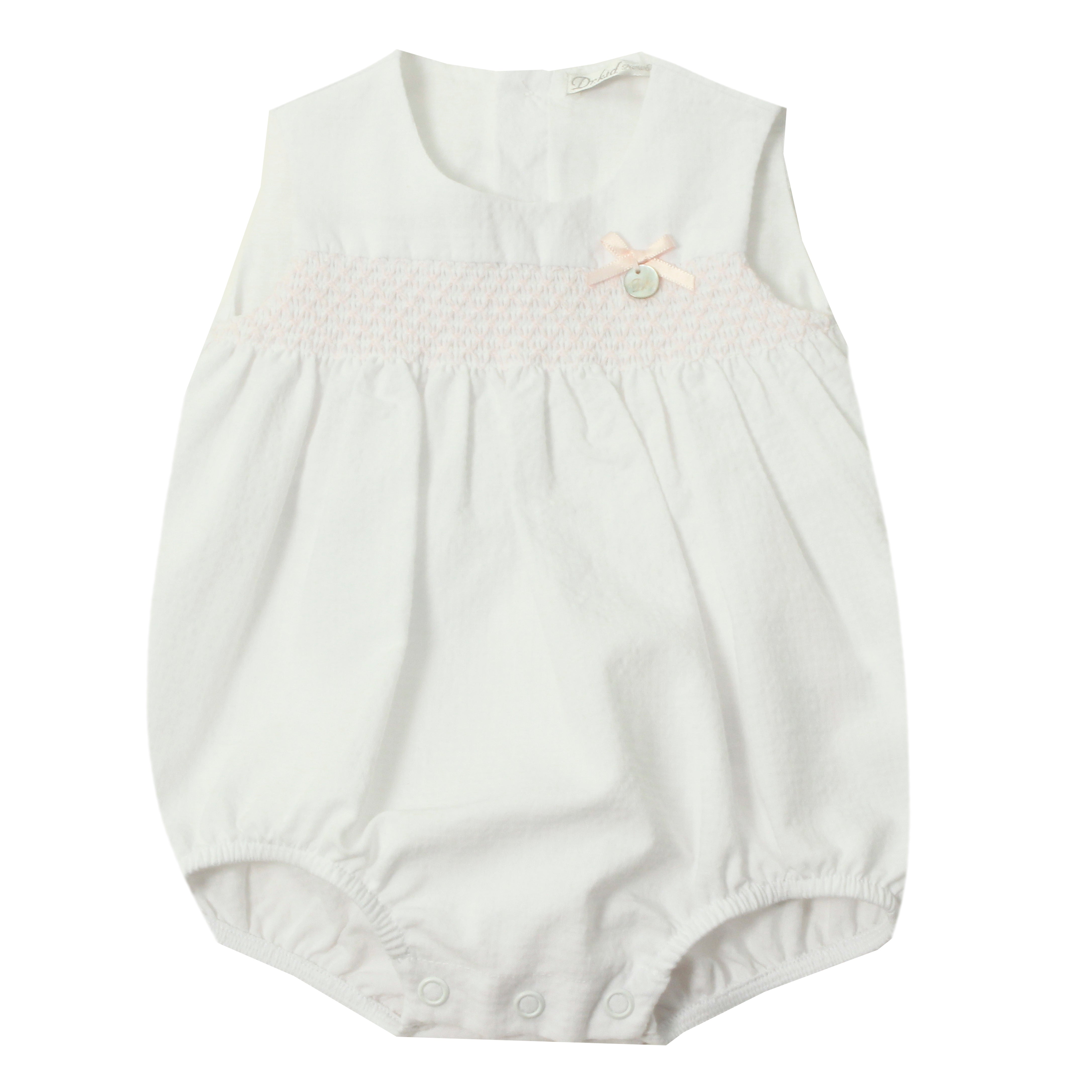 Questo pagliaccetto smanicato in cotone punto smoke è elegante e perfetto per la tua neonata. Con il suo design giromanica, offre il massimo comfort e stile durante l'uscita dalla clinica. Realizzato con tessuti di qualità, è ideale per le prime occasioni speciali della vita del tuo bambino.