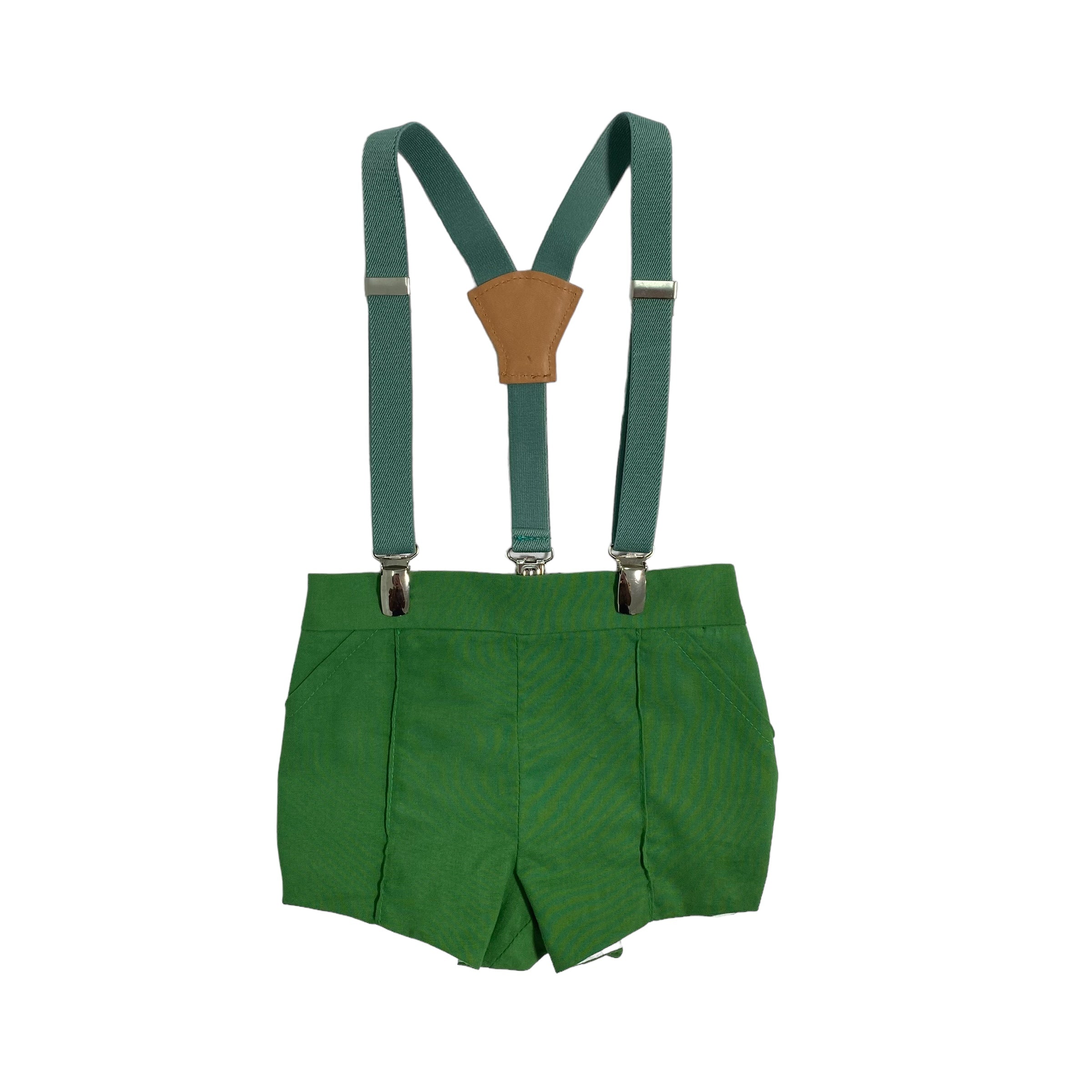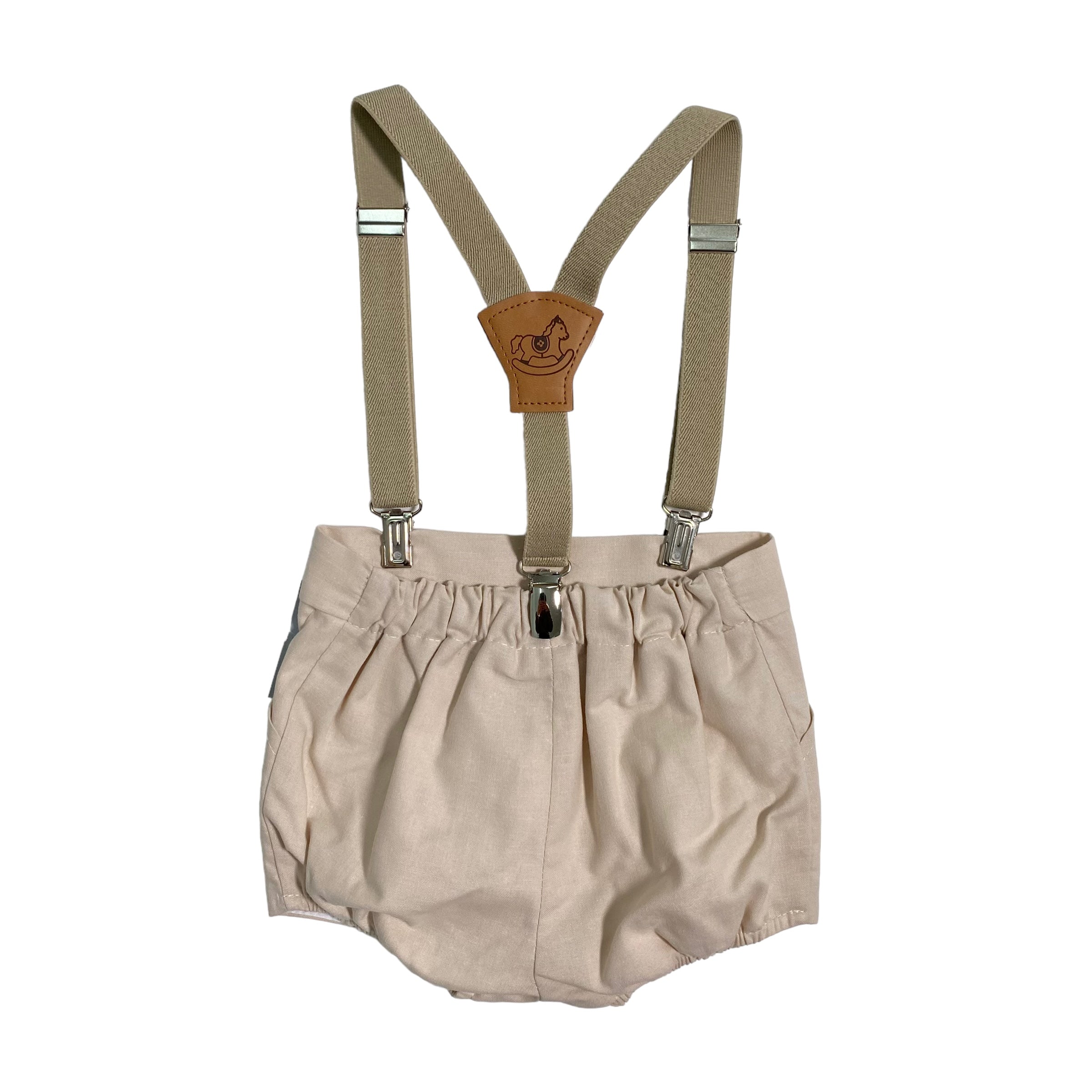 Versatile bermuda elegante per neonati, il pantaloncino in cotone è un must-have per il guardaroba del tuo piccolo. Le bretelle elastiche removibili con cavalluccio a dondolo rendono il pantaloncino unico e chic. Ideale per ogni occasione, è comodo e rimane al passo con la moda.