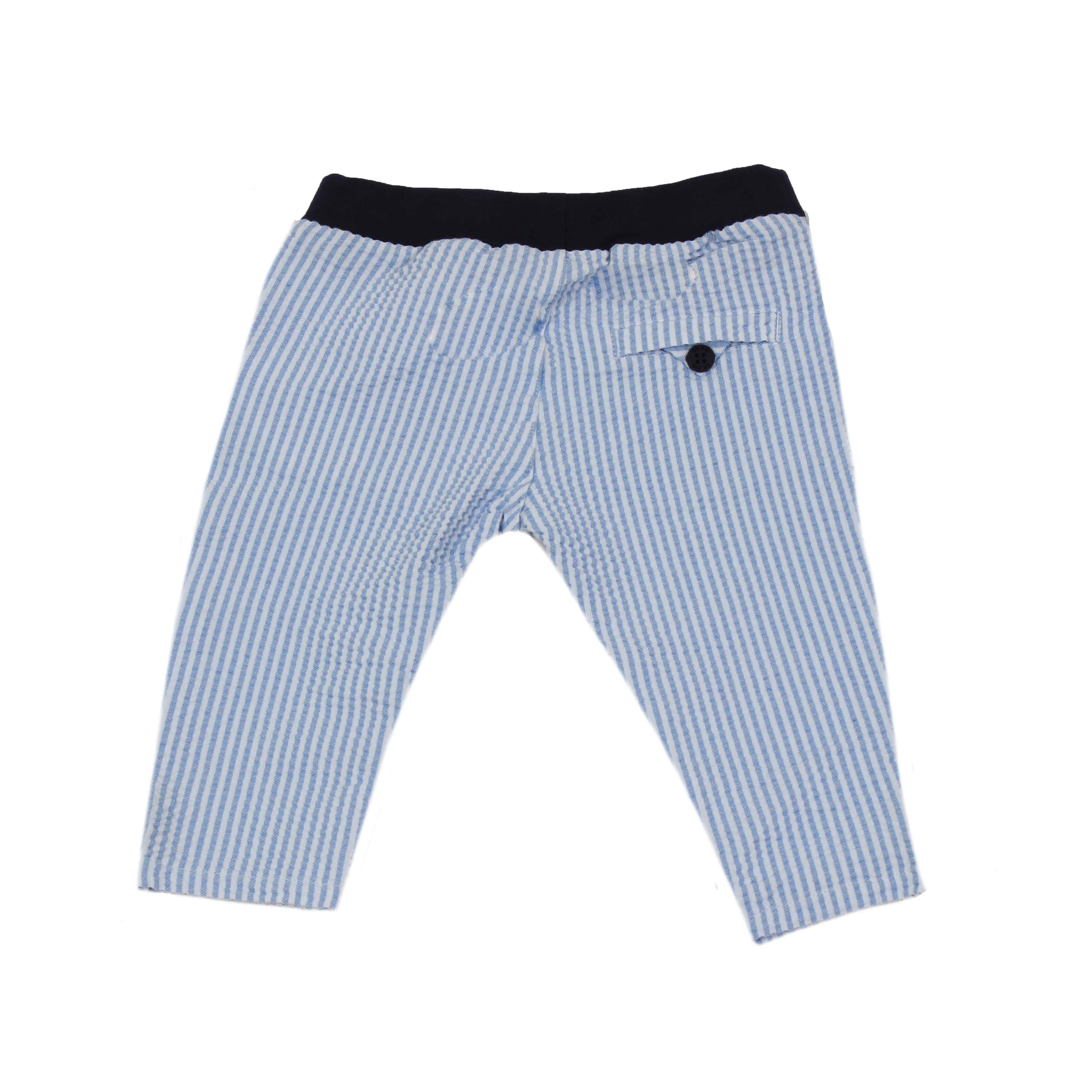 Trousers With Pockets In Wavy Effect Cotton. Striped Celste / White Elastic Waist With Blue Laces