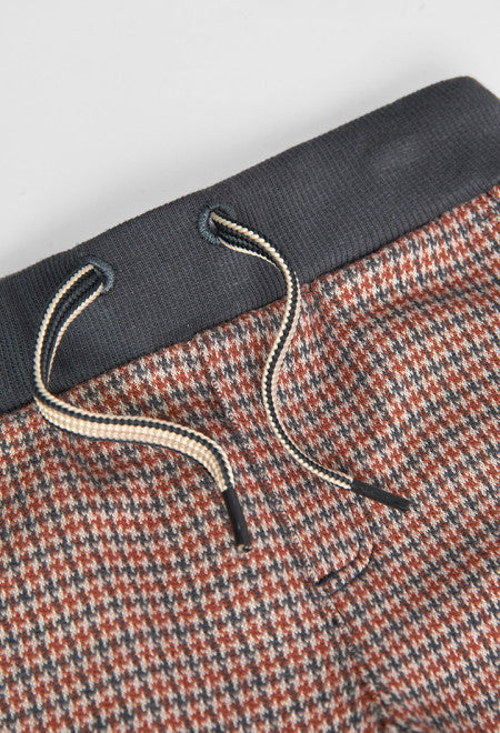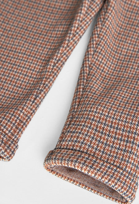 Pantalone lungo in punto milano, fantasia pied de poule, con elastico con laccetto in vita.