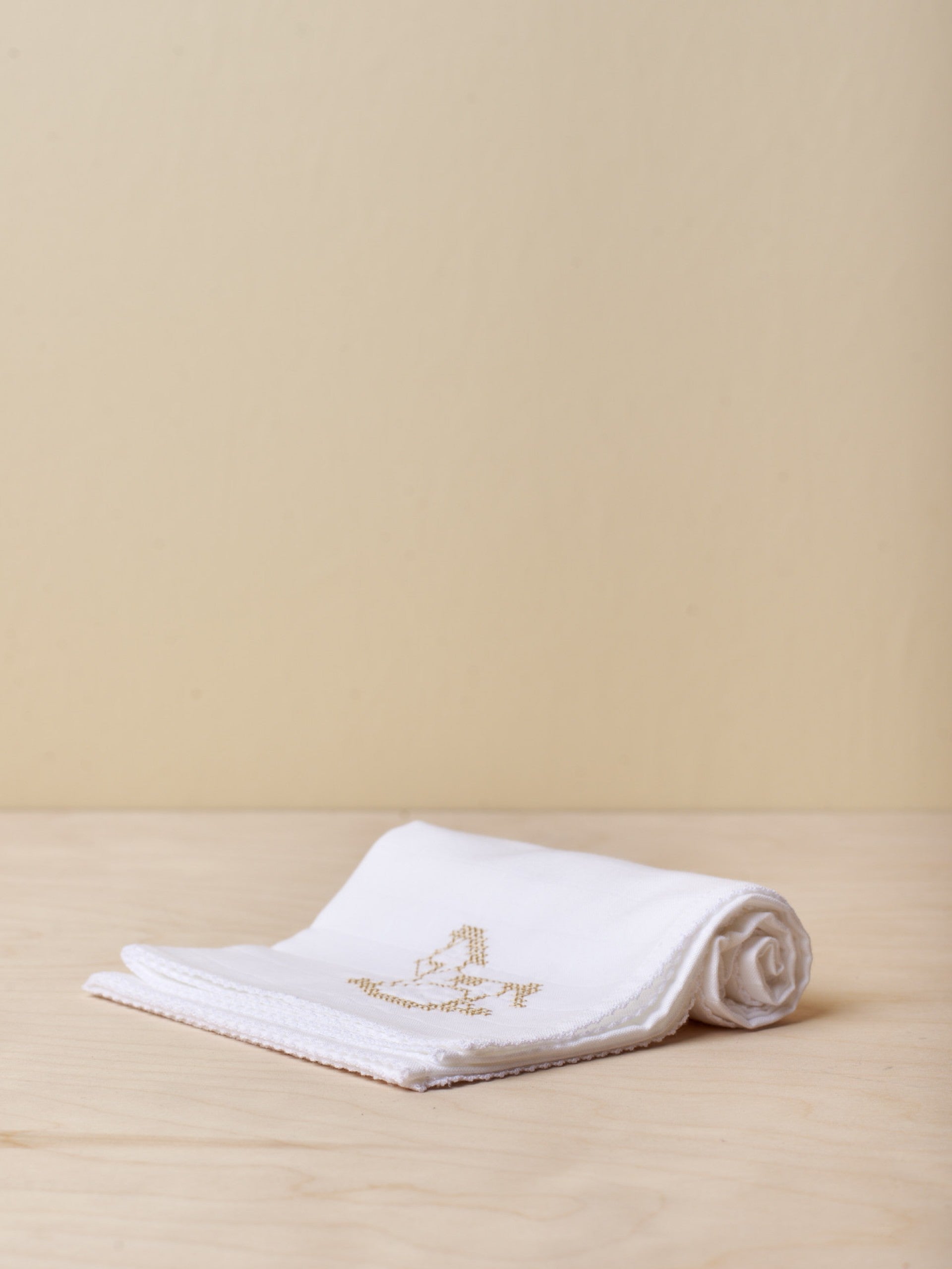 Cool cotton gauze square with a rocking horse design embroidered for him and her and embroidered border.