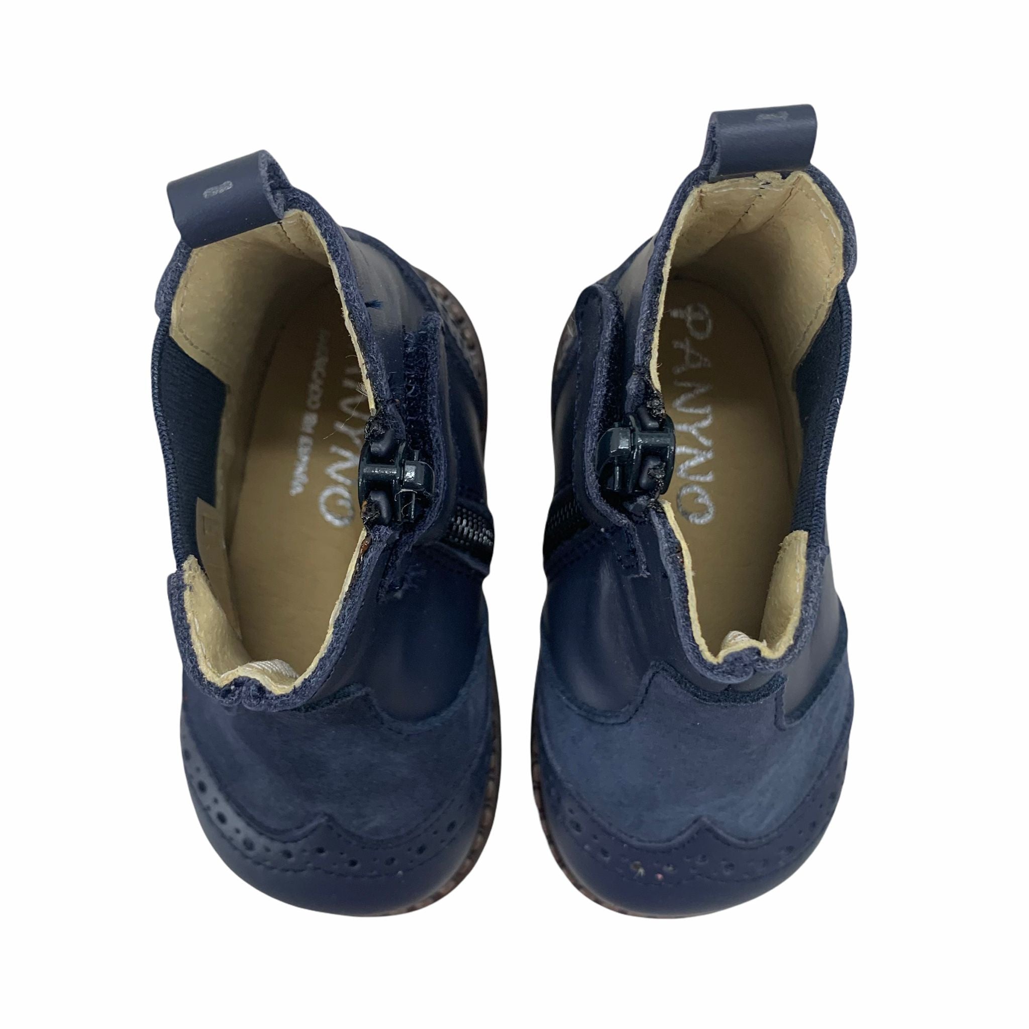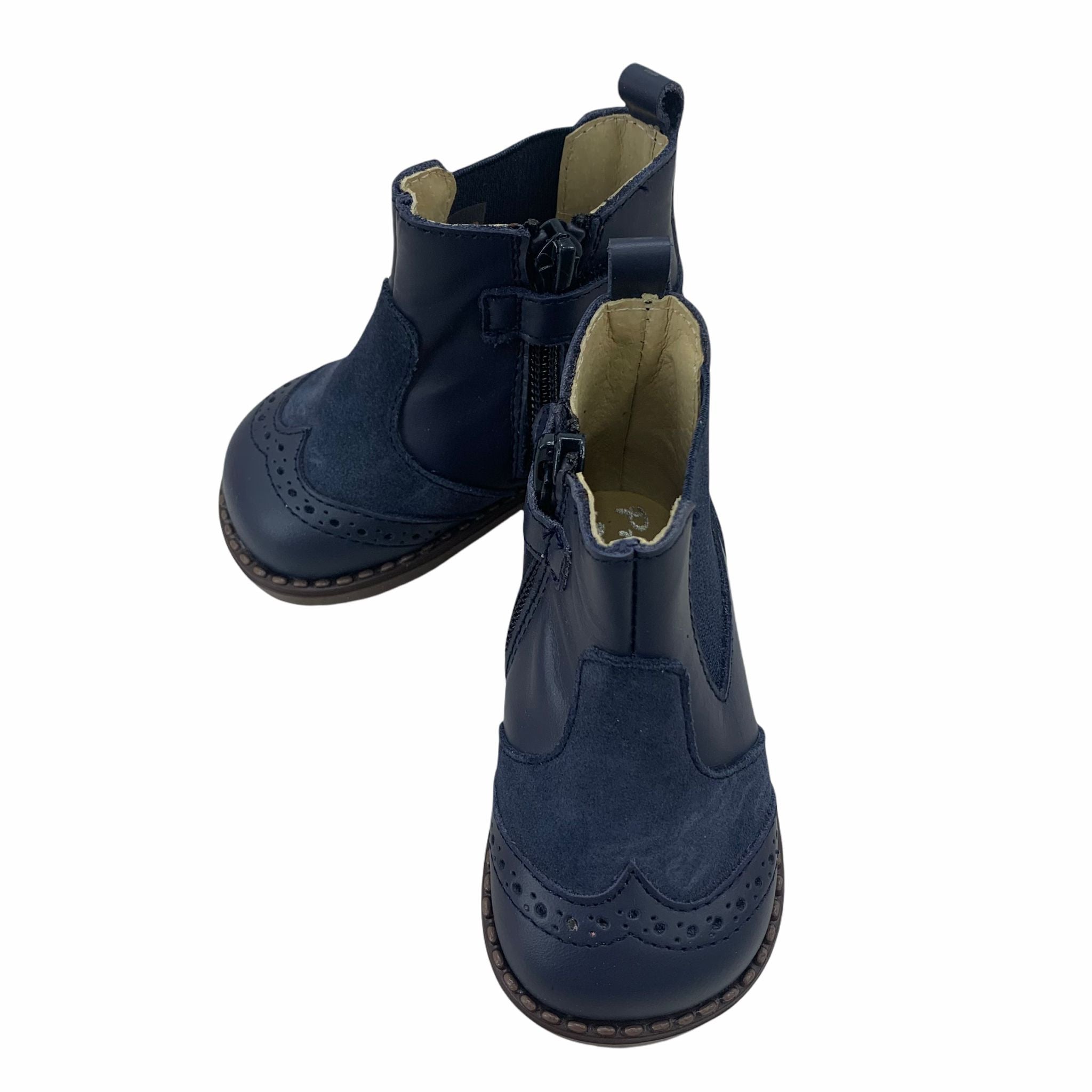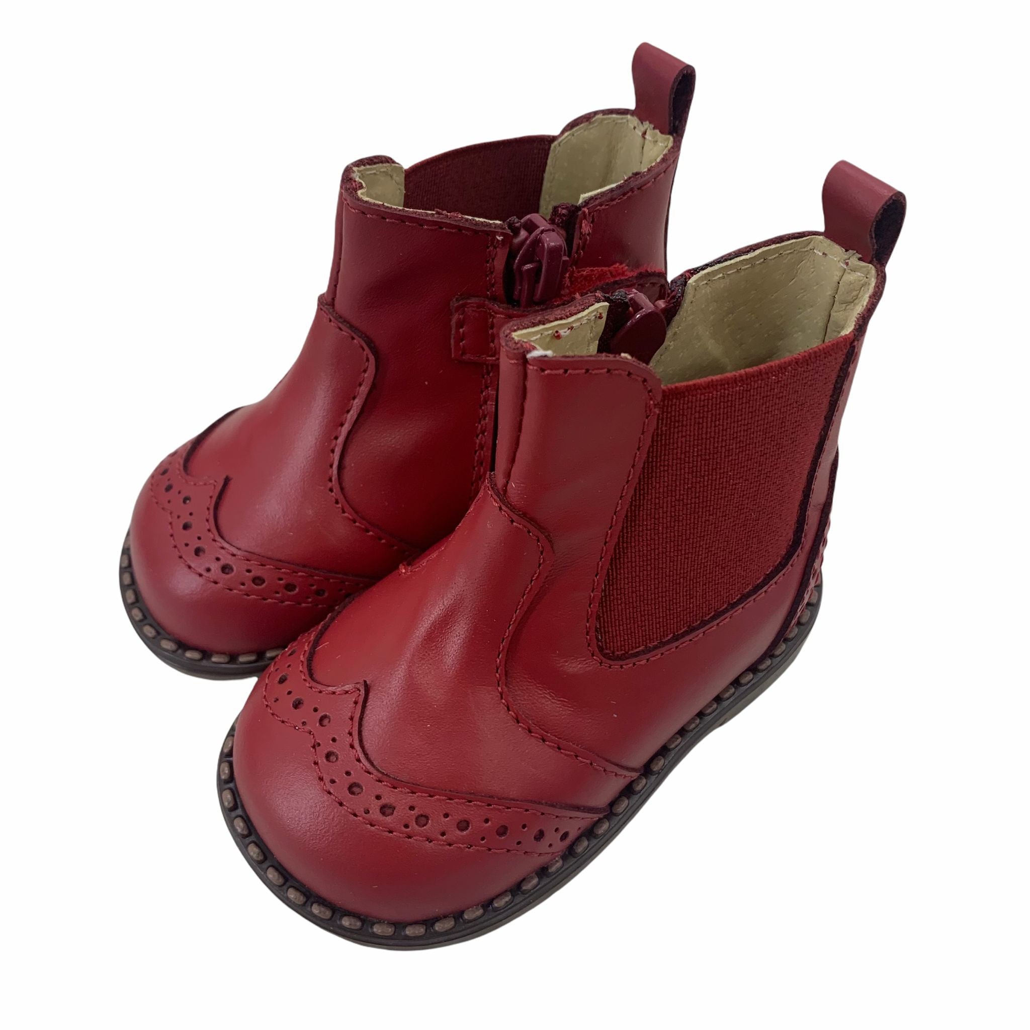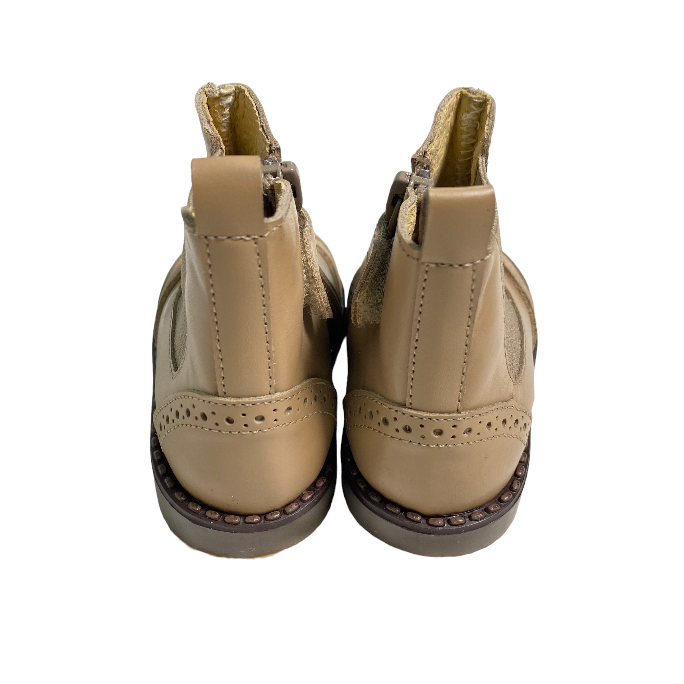 Genuine leather combat boots with zip and elastic on the side and non-slip sole.