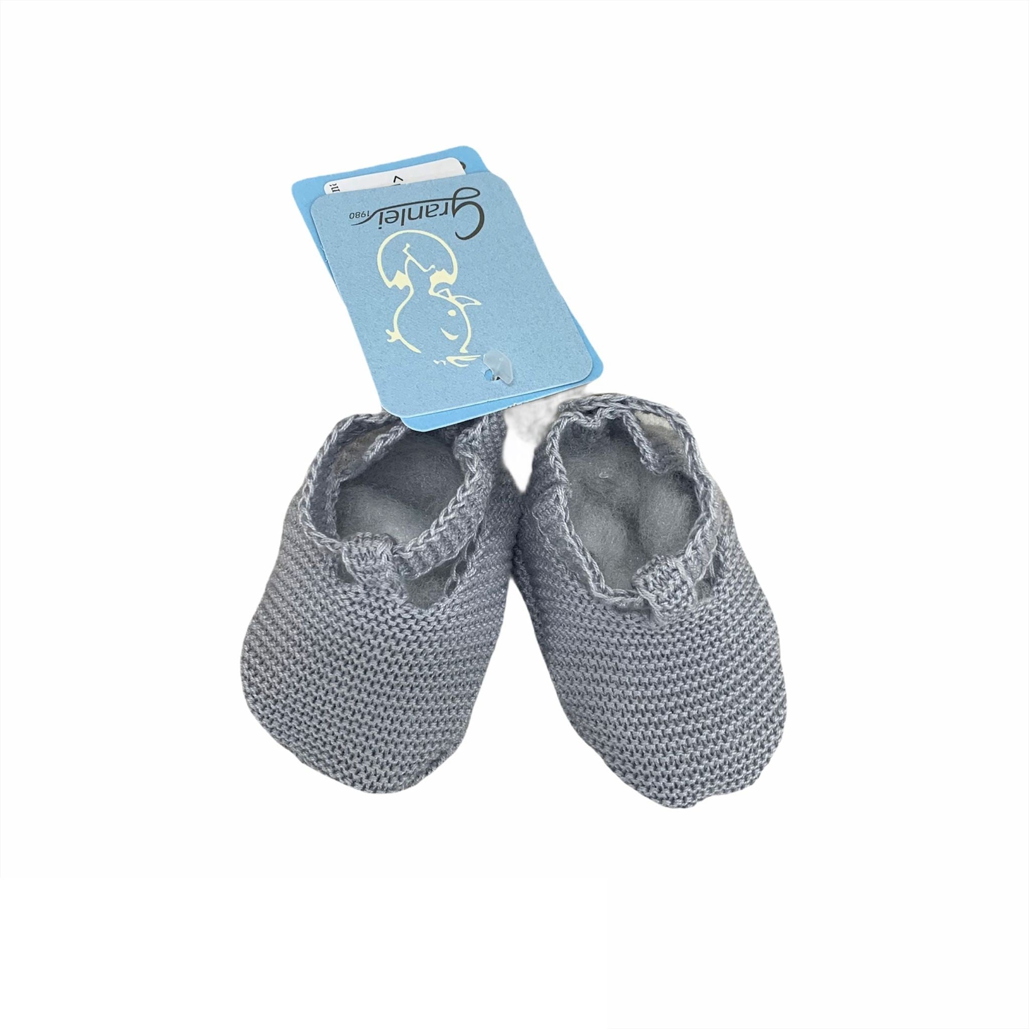 Cradle shoes in cotton thread, closure with mother-of-pearl buttons.