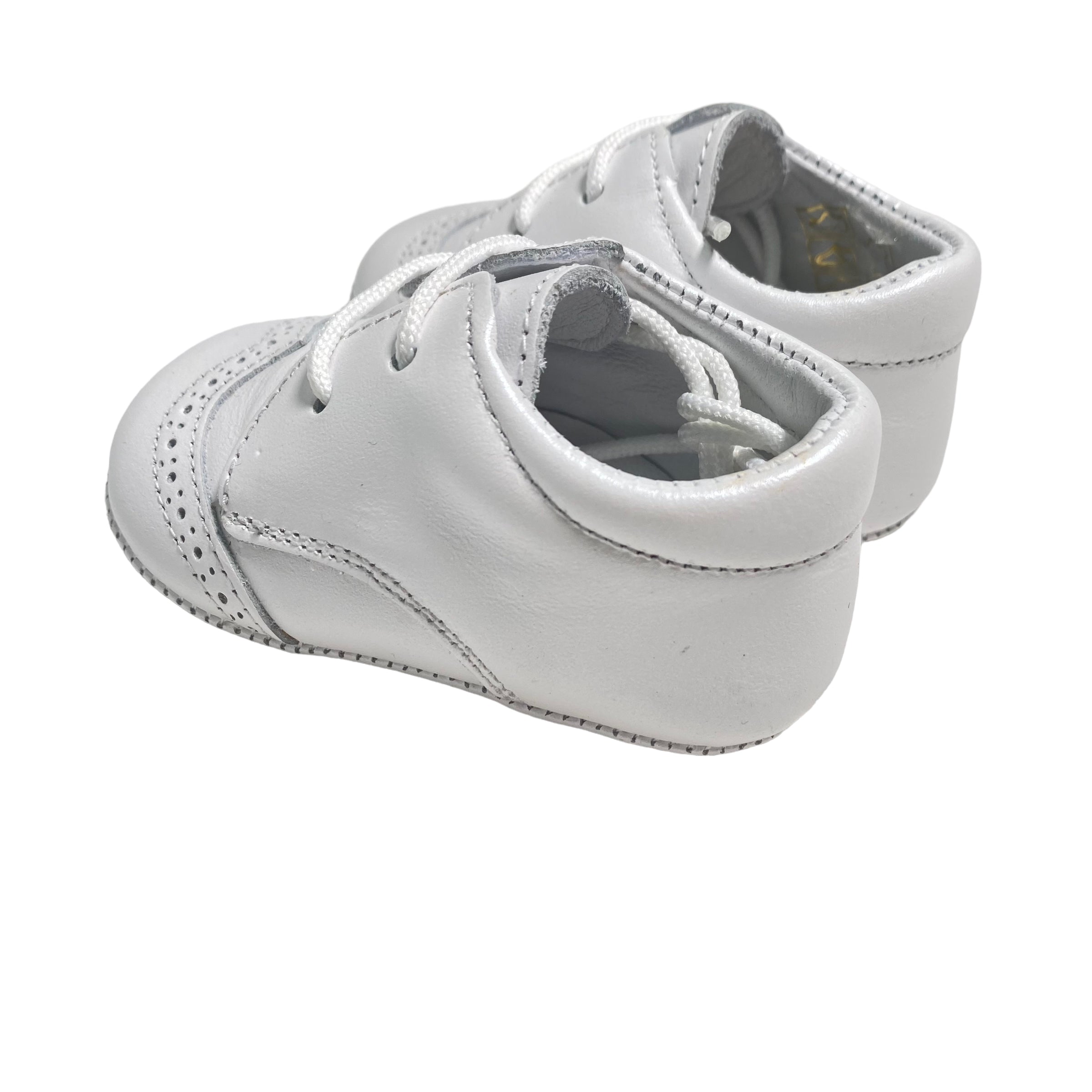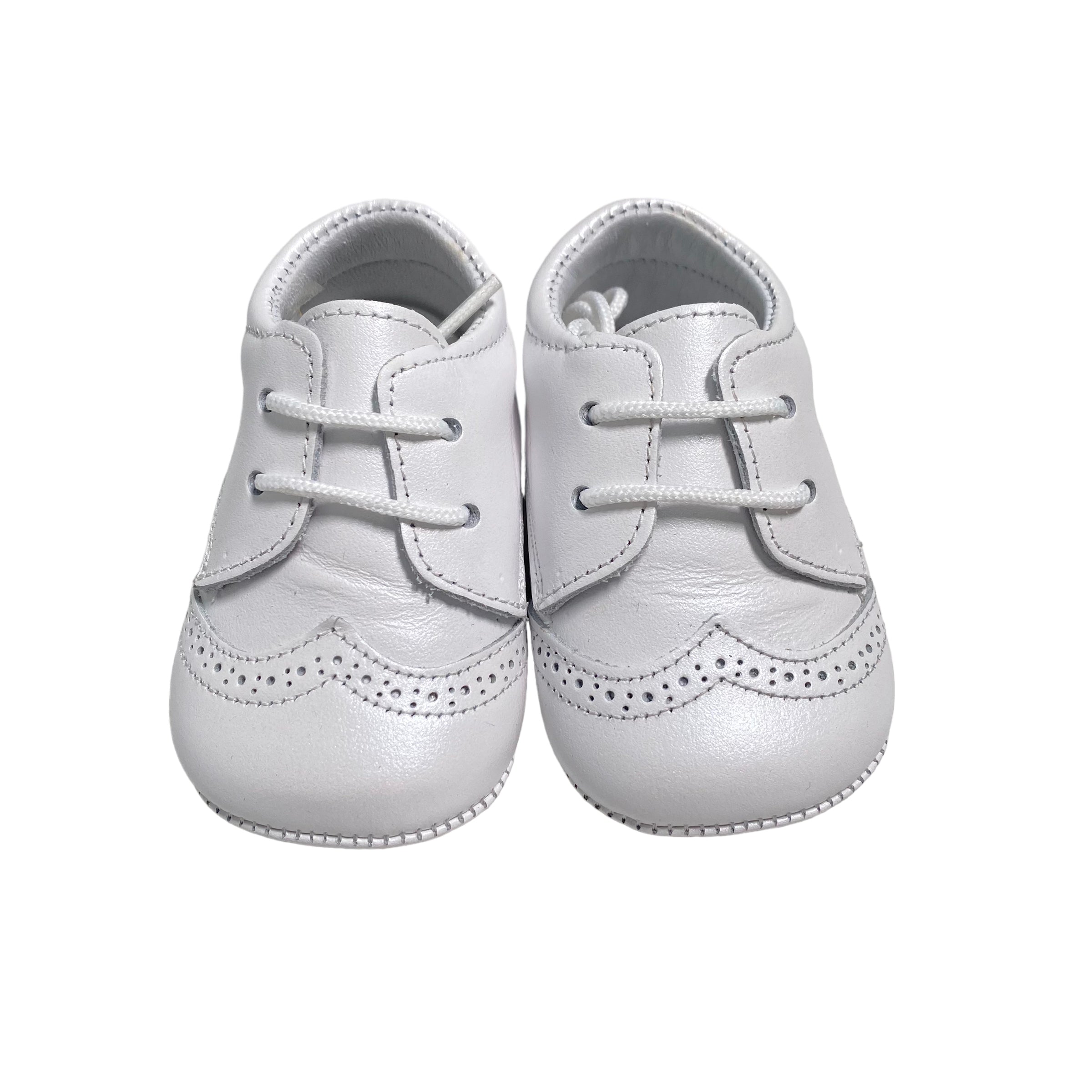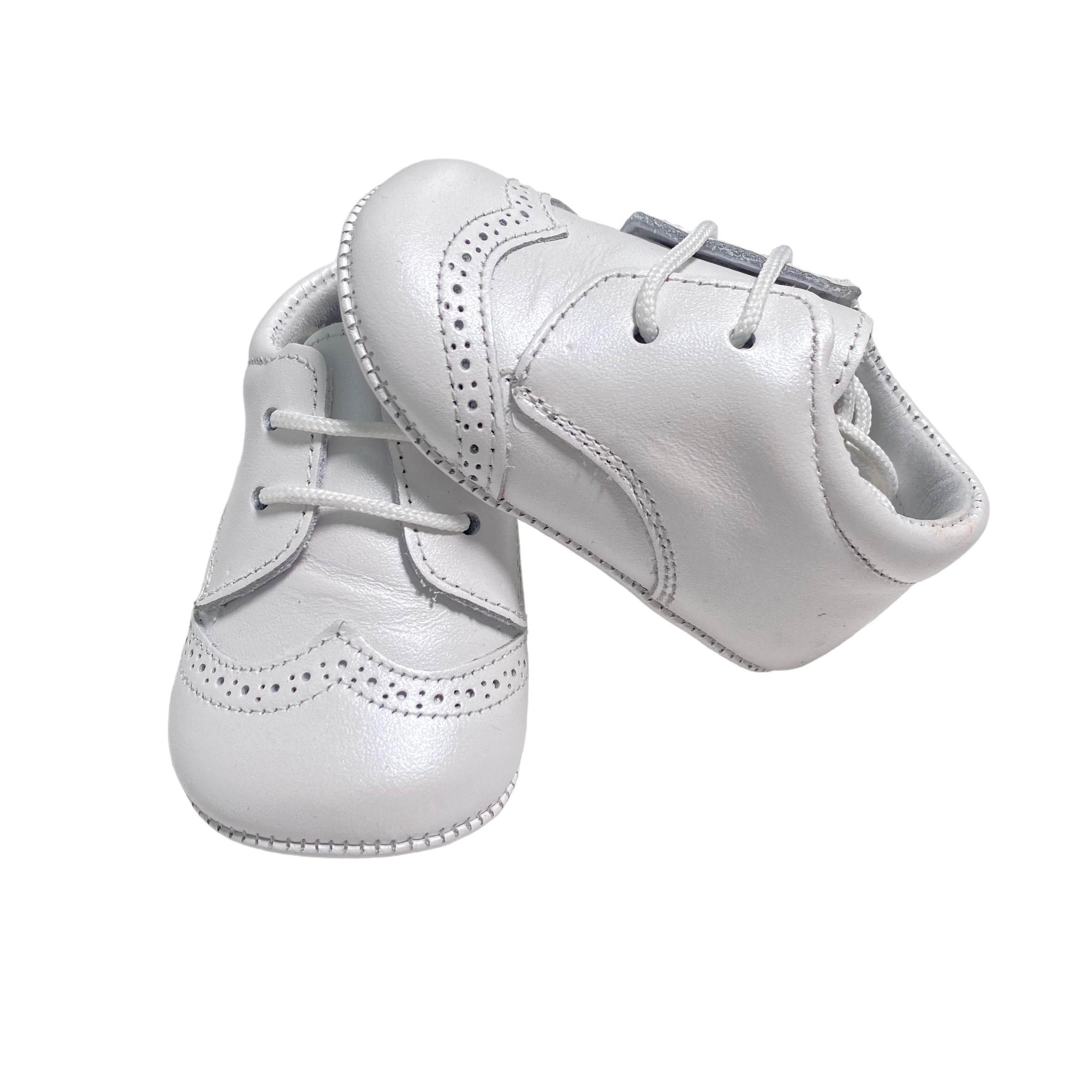 Scarpe da culla modello francesina, con chiusura con lacci.