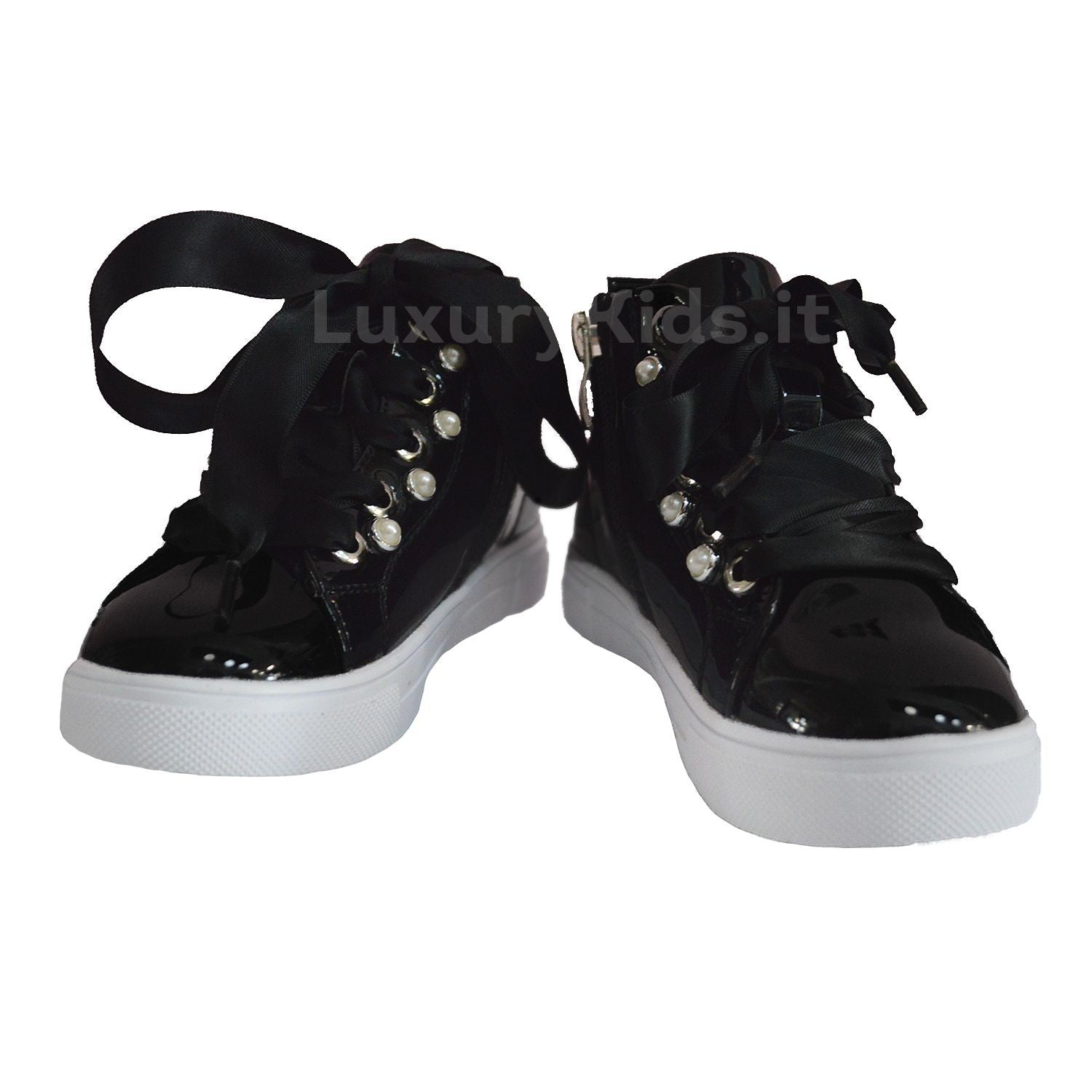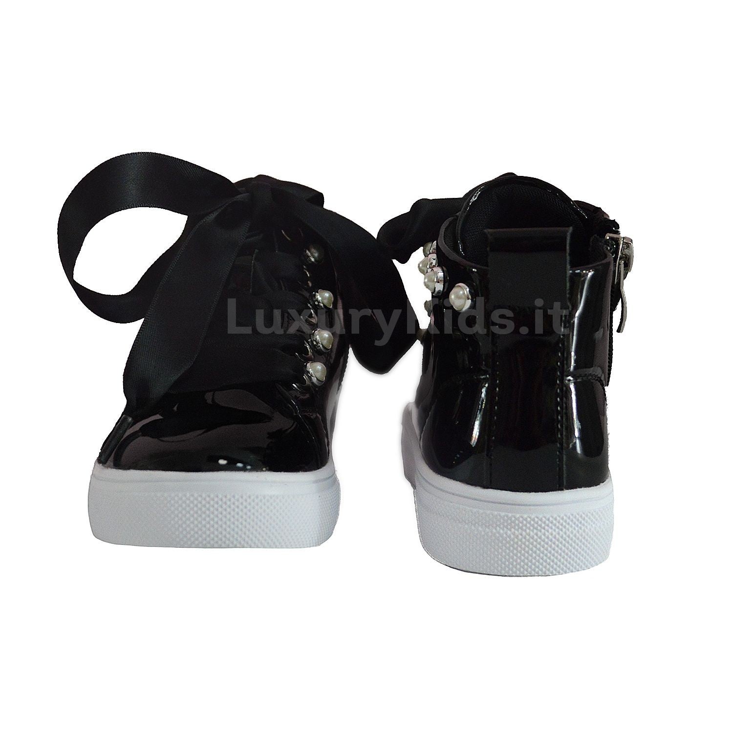 -Shoes sneackers model with black ankle boot in patent leather with white rubber