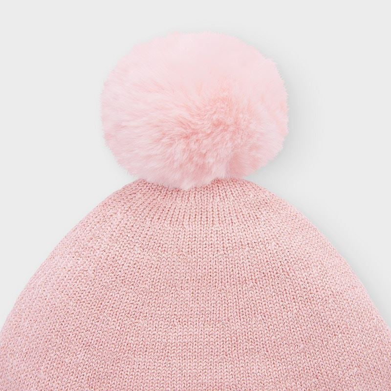 Newborn hat in warm and flexible fabric that guarantees a comfortable fit and protects from the cold. Decorative elements: pompoms .