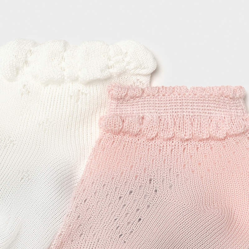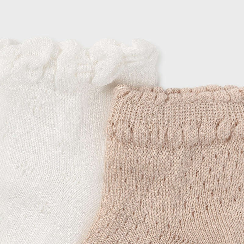 Short Cotton Socks. Available in Two Variants: One White and Pink Pair, the other White and Beige