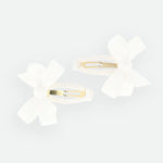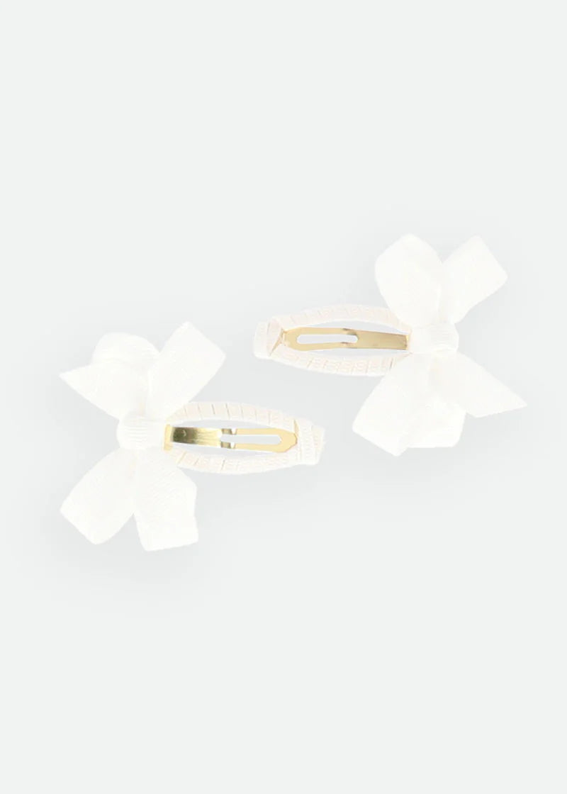 Splendidi fermacapelli a fiocco in confezione doppia, di colore bianco bucaneve, realizzati con il nostro iconico nastro in gros-grain. Il tocco finale perfetto per completare il vostro look.
