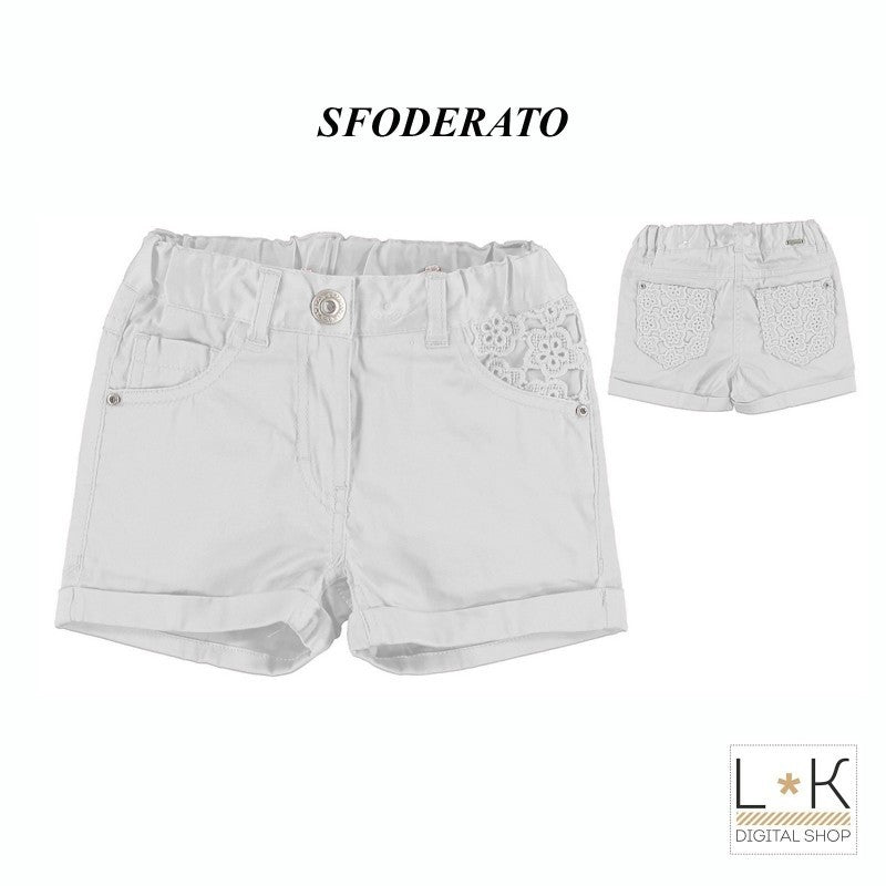 -Short in white cotton with embroidered back pockets and left pocket on the front