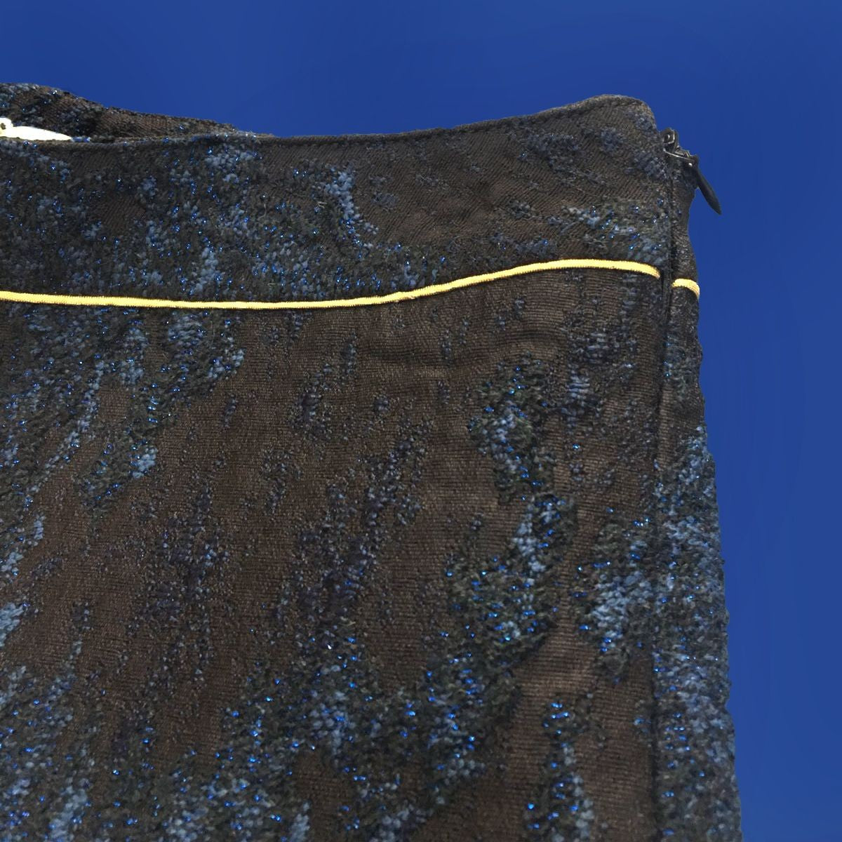 Blue laminated boucle shorts with elastic waistband to adjust the fit