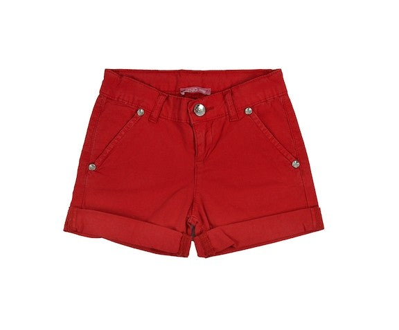 Solid color red cotton shorts with elastic waistband to adjust the fit