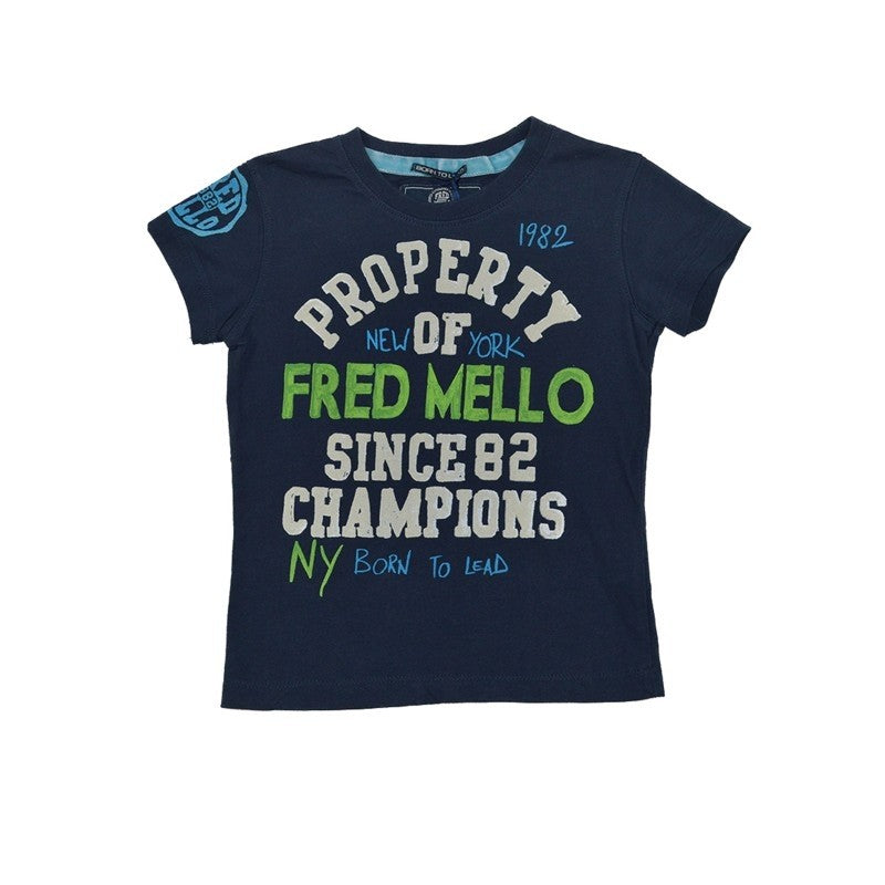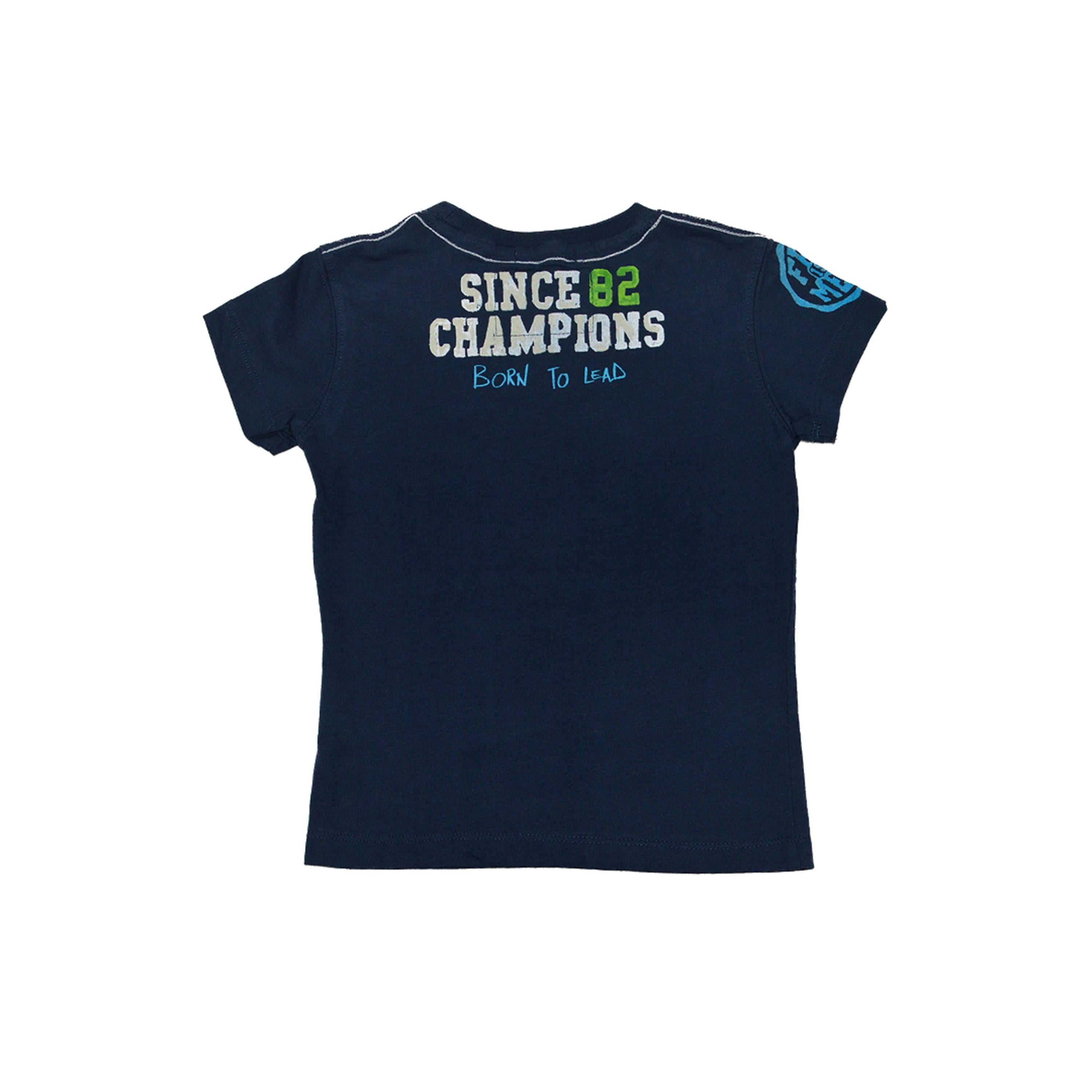Solid color blue Cotton T-Shirt with Print on the chest and on the back