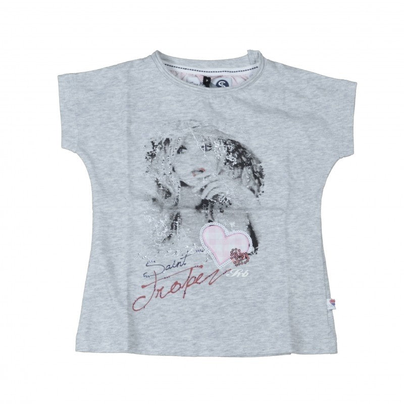 Gray cotton half sleeve T-shirt with print and applications on the front