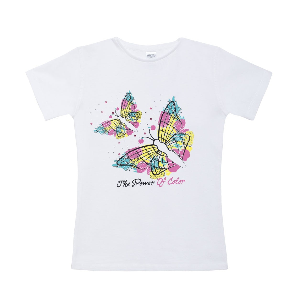 T-Shirt In Cotone Bianca Con Stampa Camaleontica Bambina BARBARAS XB141 - BARBARAS - LuxuryKids