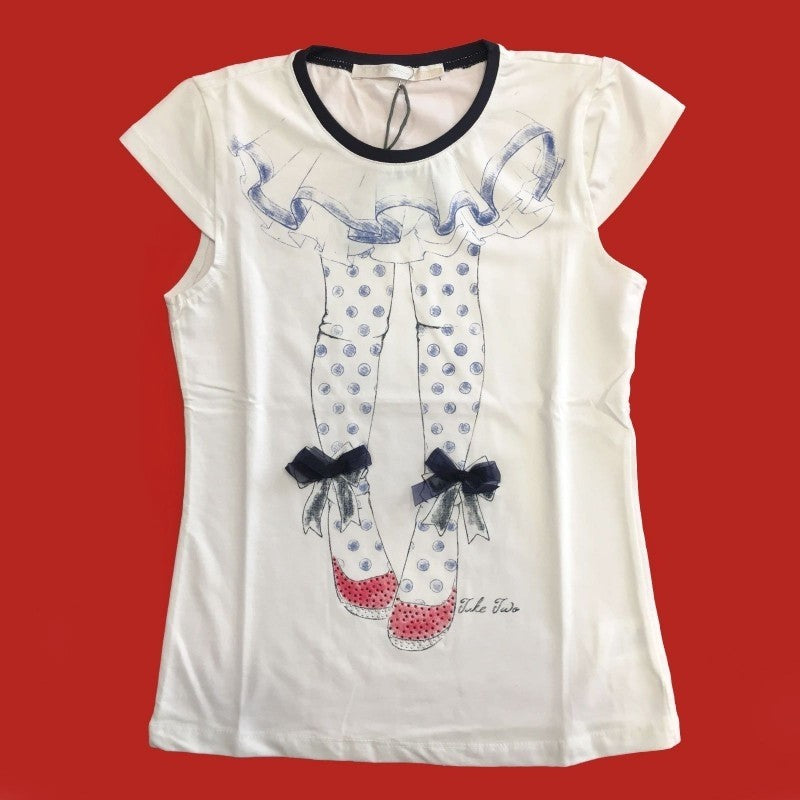 White Cotton T-Shirt with Take Two Girl Print M03143
