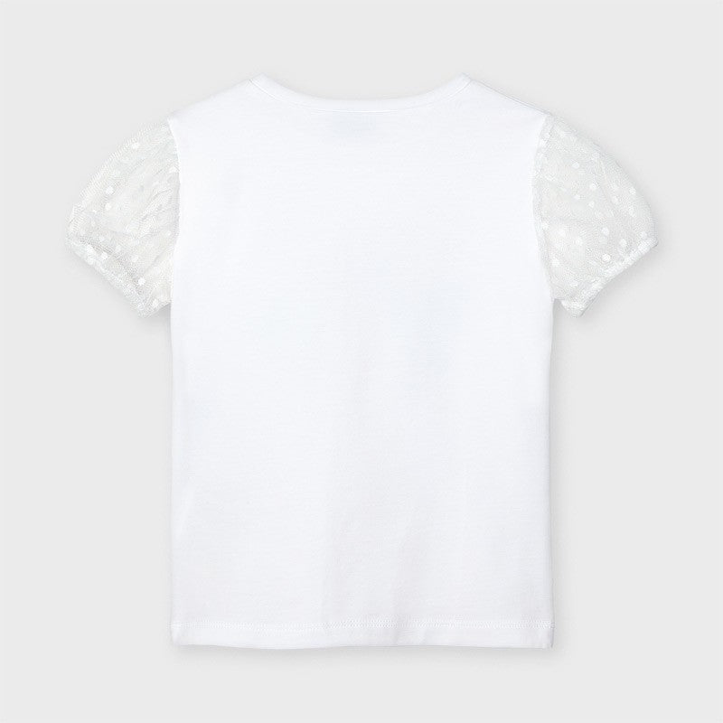 Cotton half sleeve t-shirt with floral print and plumetis sleeve.