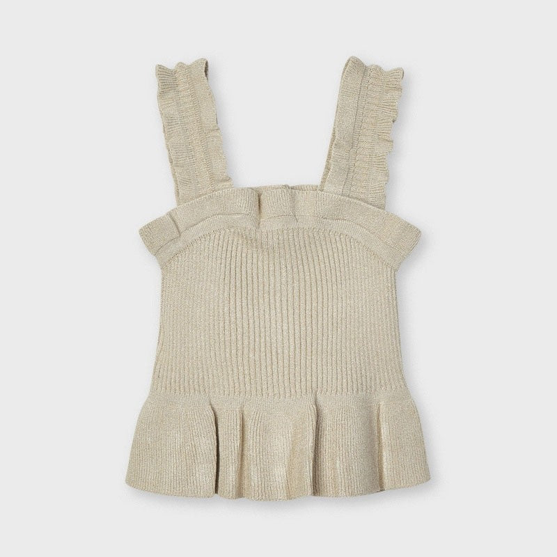 Top in gold lurex cotton thread, ribbed.