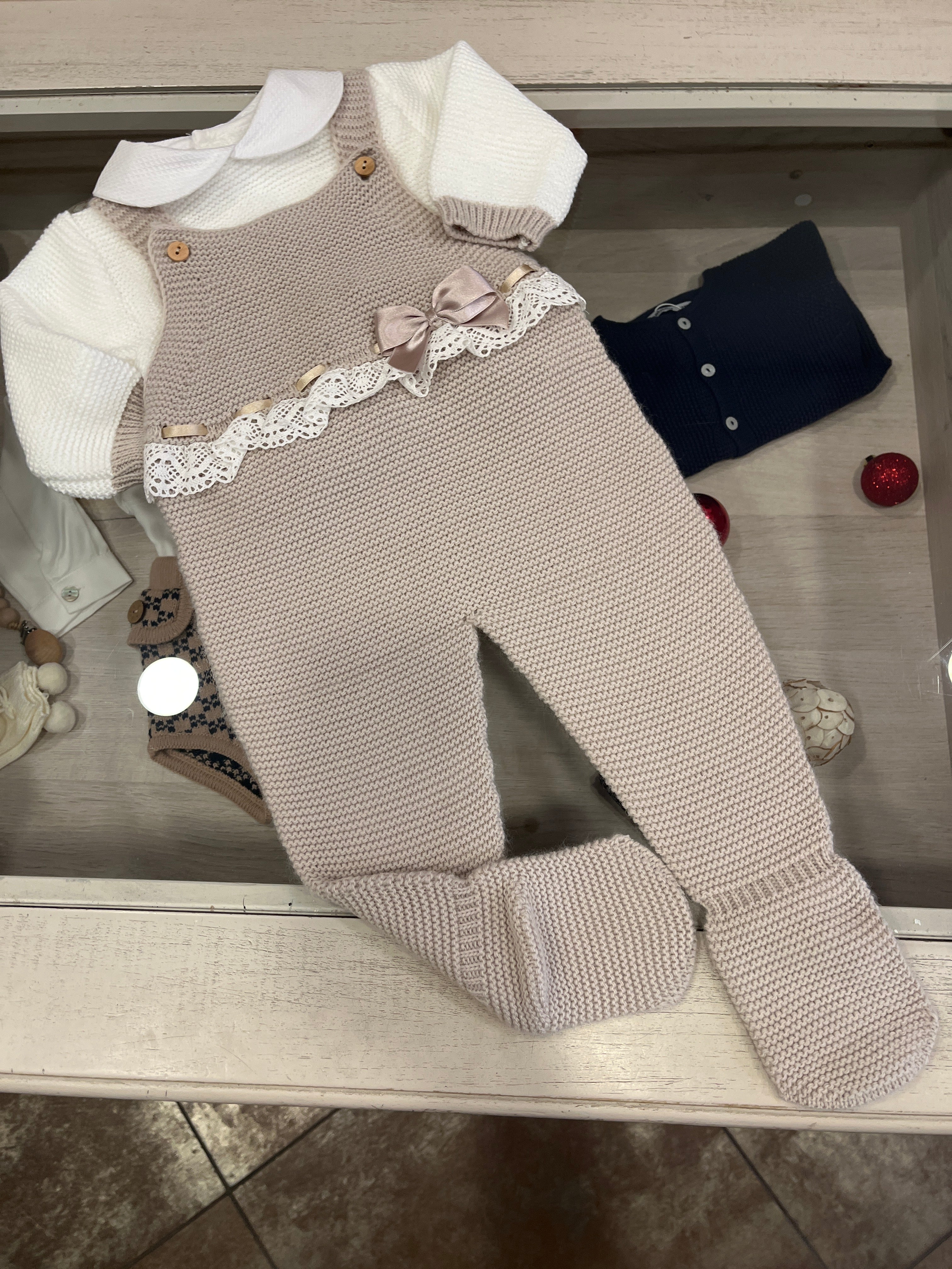 Questo completo neonato in due pezzi include una tutina intera con piedini e un maglioncino raffinato con colletto in piquet, pensato per garantire comfort e stile. Perfetto come corredino, combina praticità e un design curato per accompagnare la tua bambina con morbidezza e eleganza fin dai primi giorni.