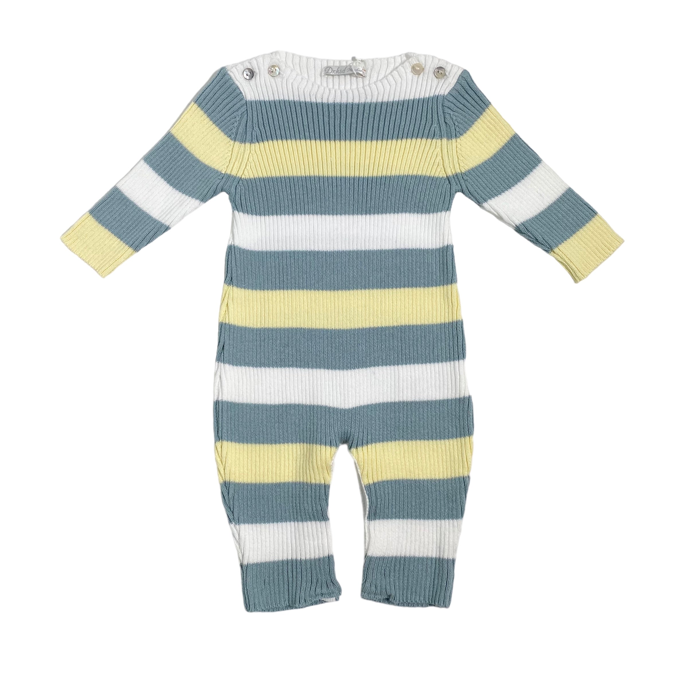 Tutina intera in filo di cotone, a fasce multicolour, a costine.