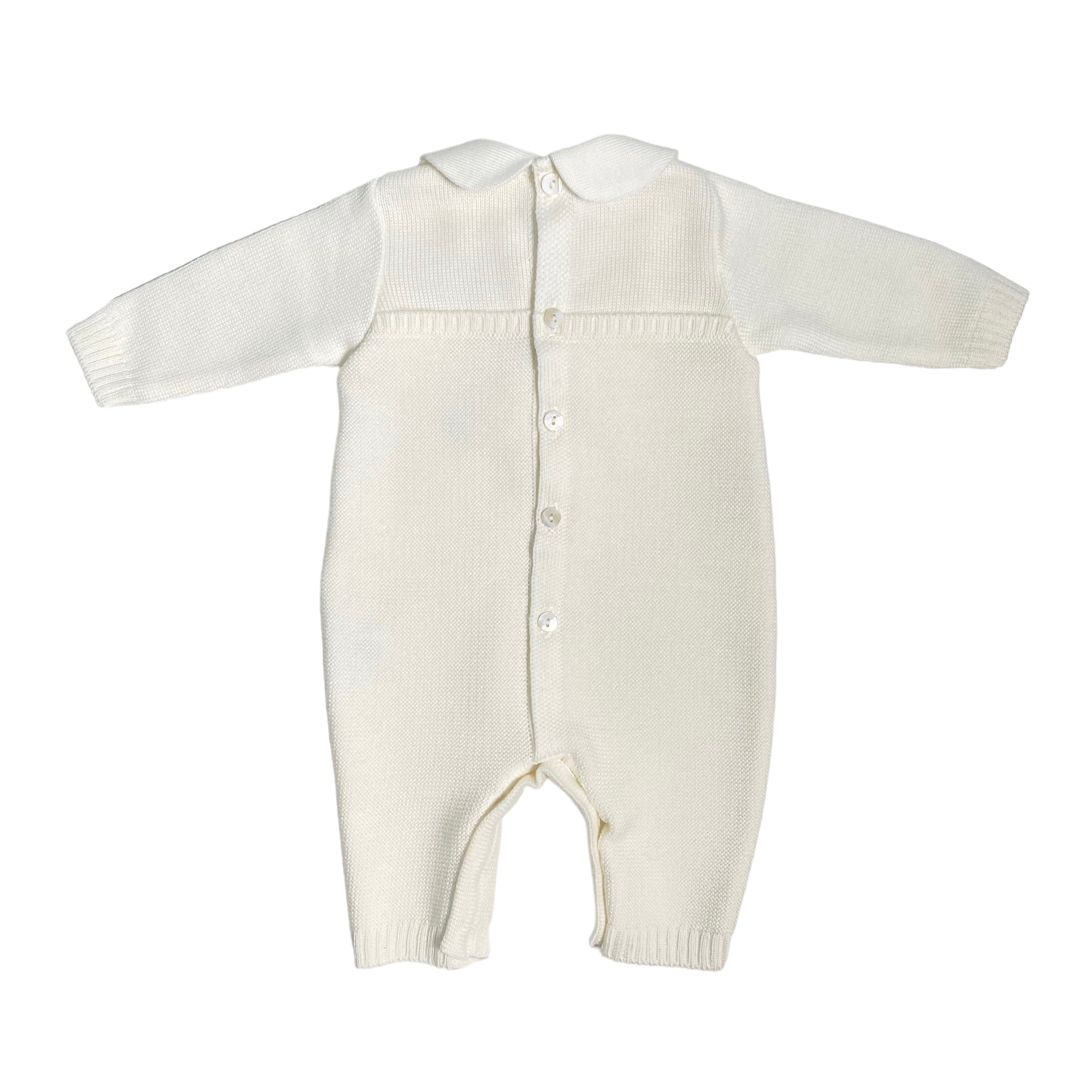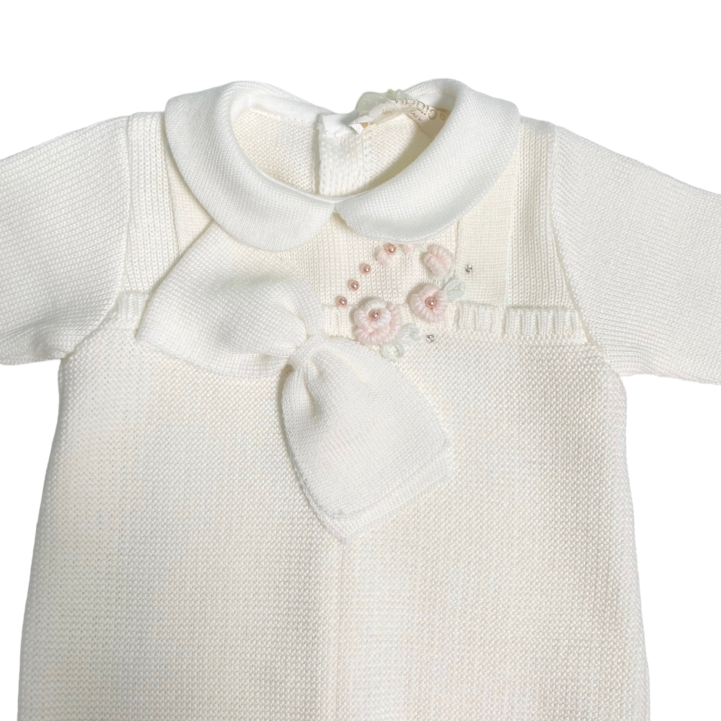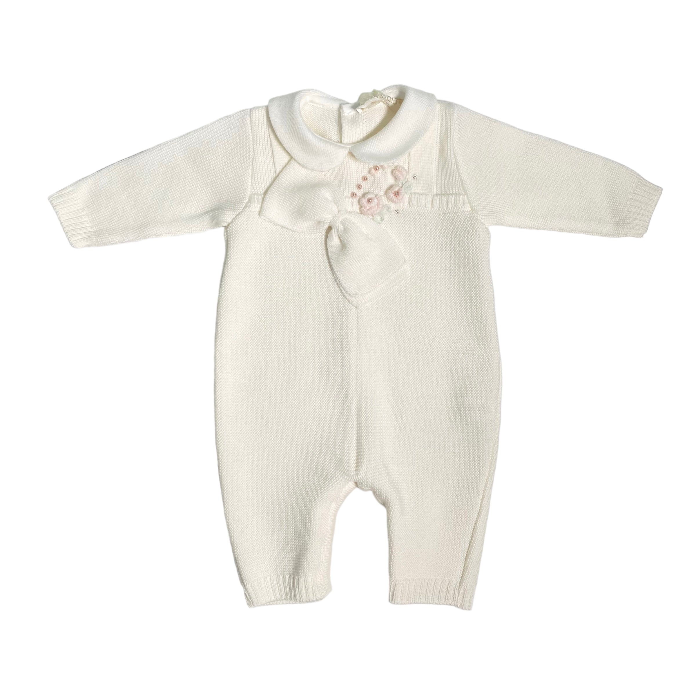 Tutina intera in pura lana 100% con applicazione di fioccone e ricamo.