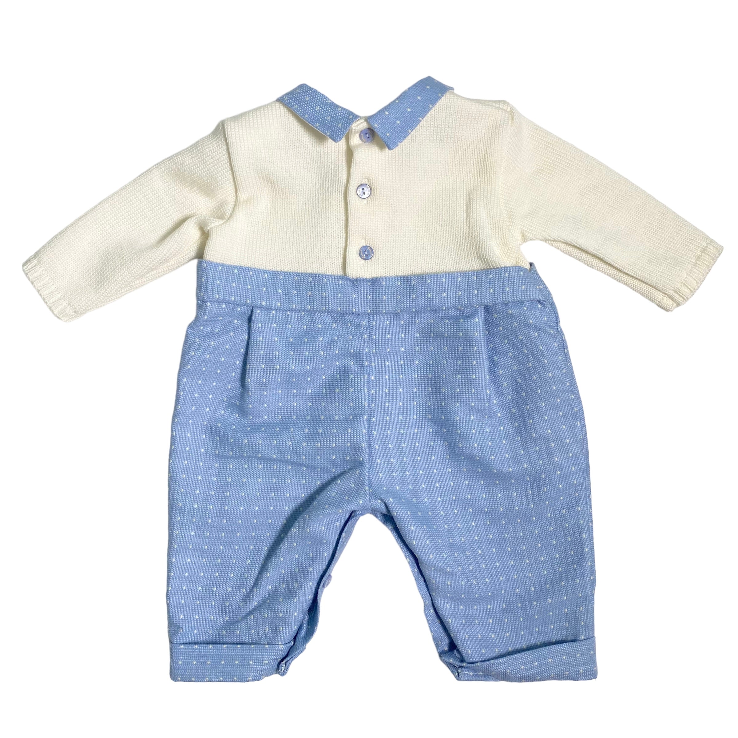 Tutina intera con corpetto in misto lana panna e parte inferiore in tessuto celeste con micropoise.