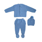 Tutina spezzata con cappello in tessuto anallergico acrilico.