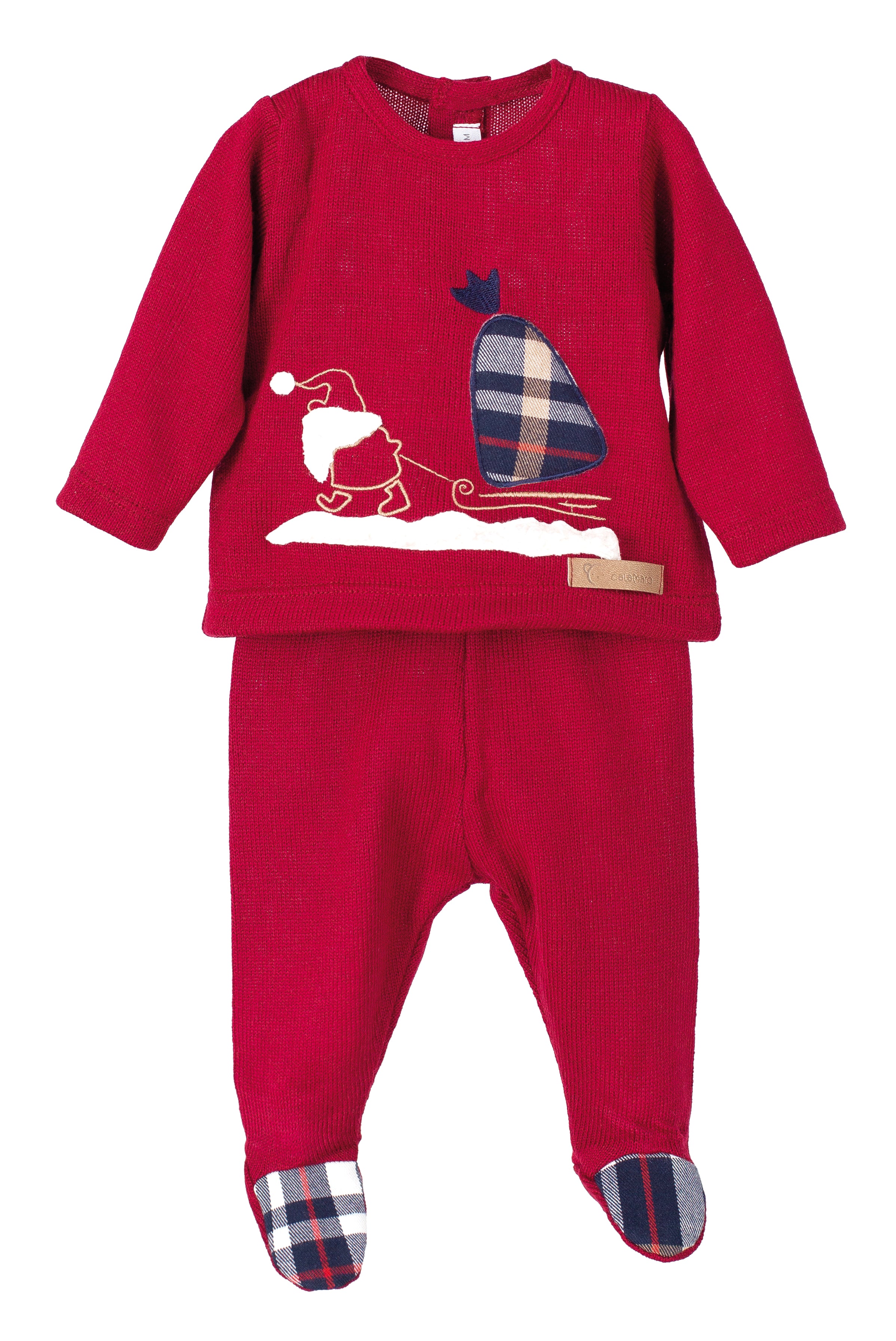 Tutina spezzata in caldo cotone con ricamo di babbo natale con slitta.