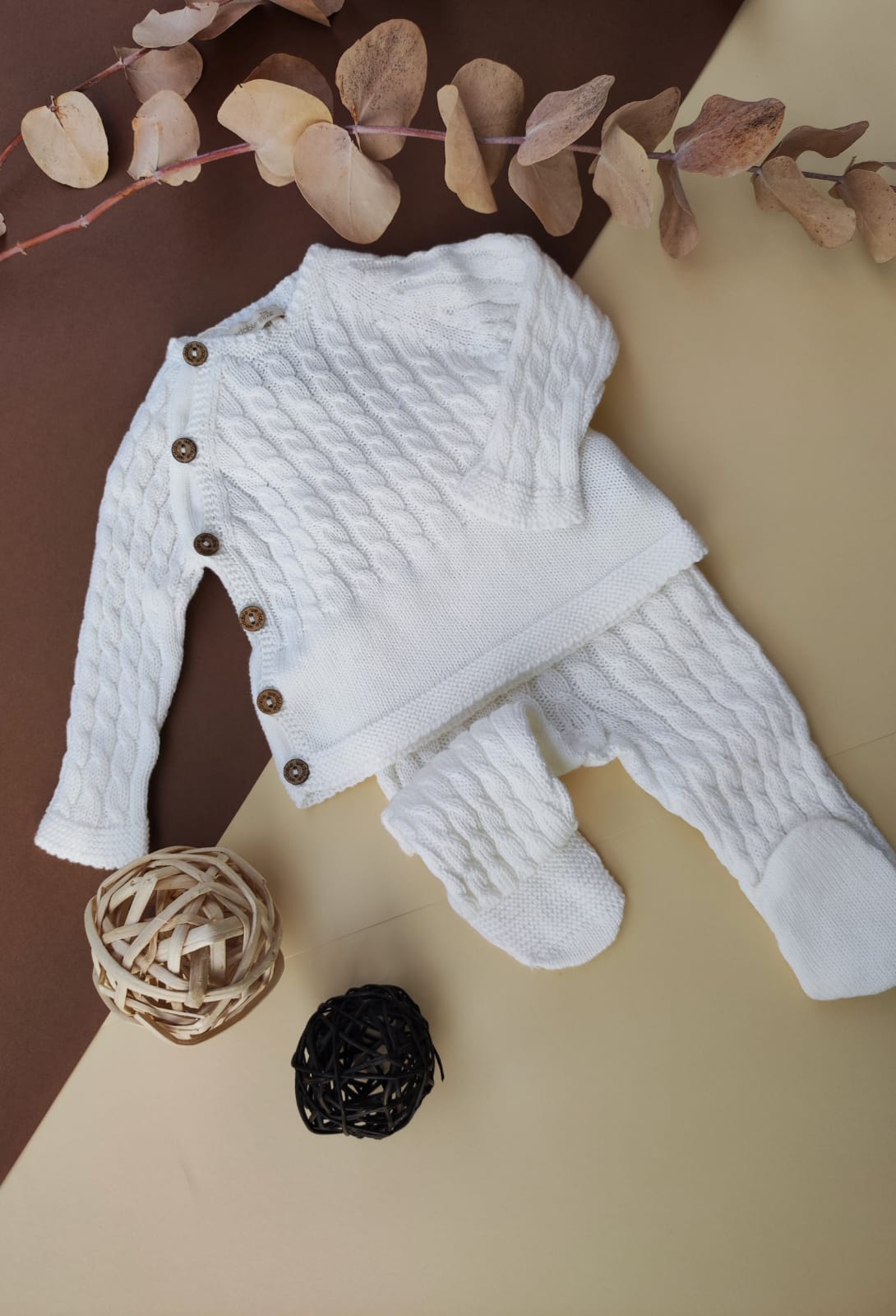 Broken romper with braids in warm organic cotton