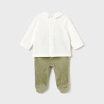 Questo completo per neonato è costituito da maglietta manica lunga con ghettina abbinata.
