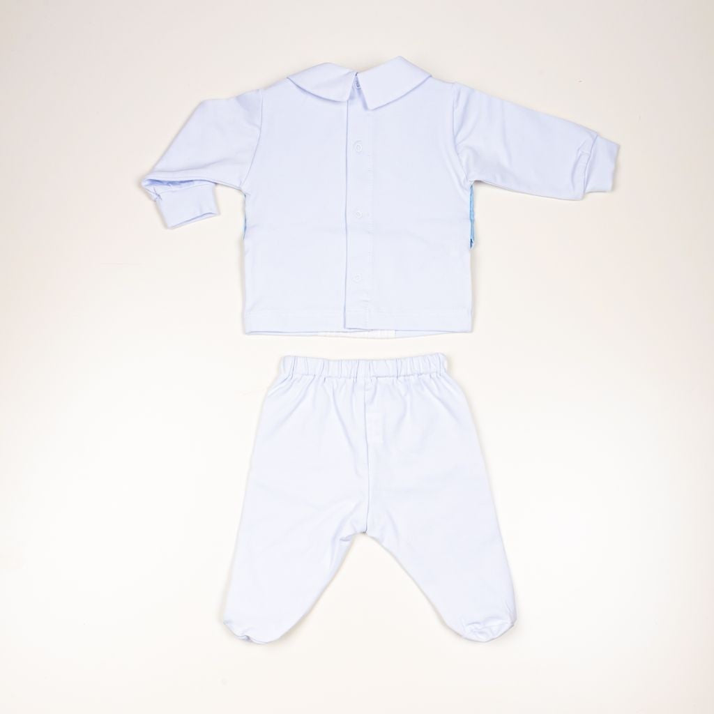 - Long Sleeve Shirt With Pleats On The Front And Faux Buttons, Faux Light Blue And White Striped Vest. Closure On The Back.