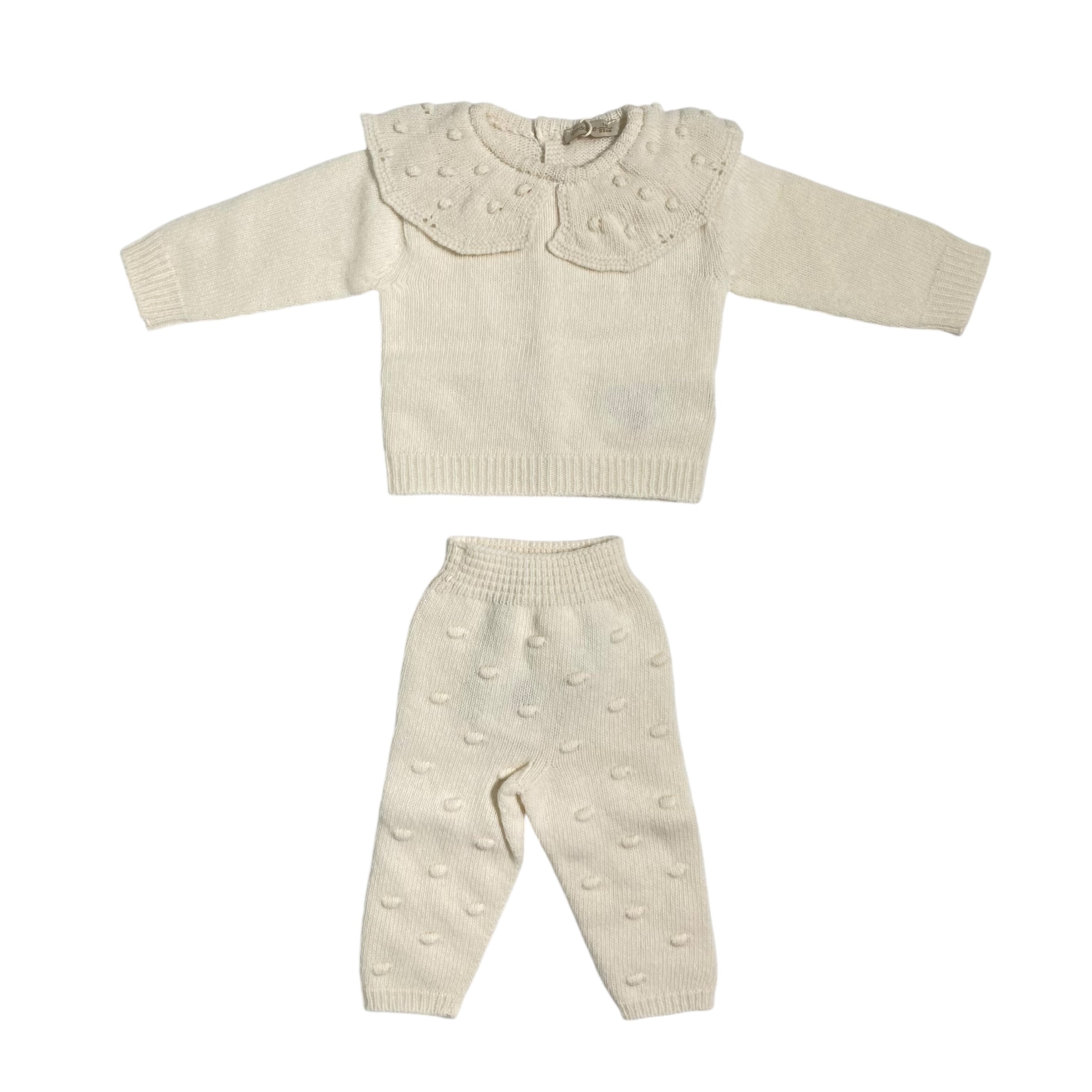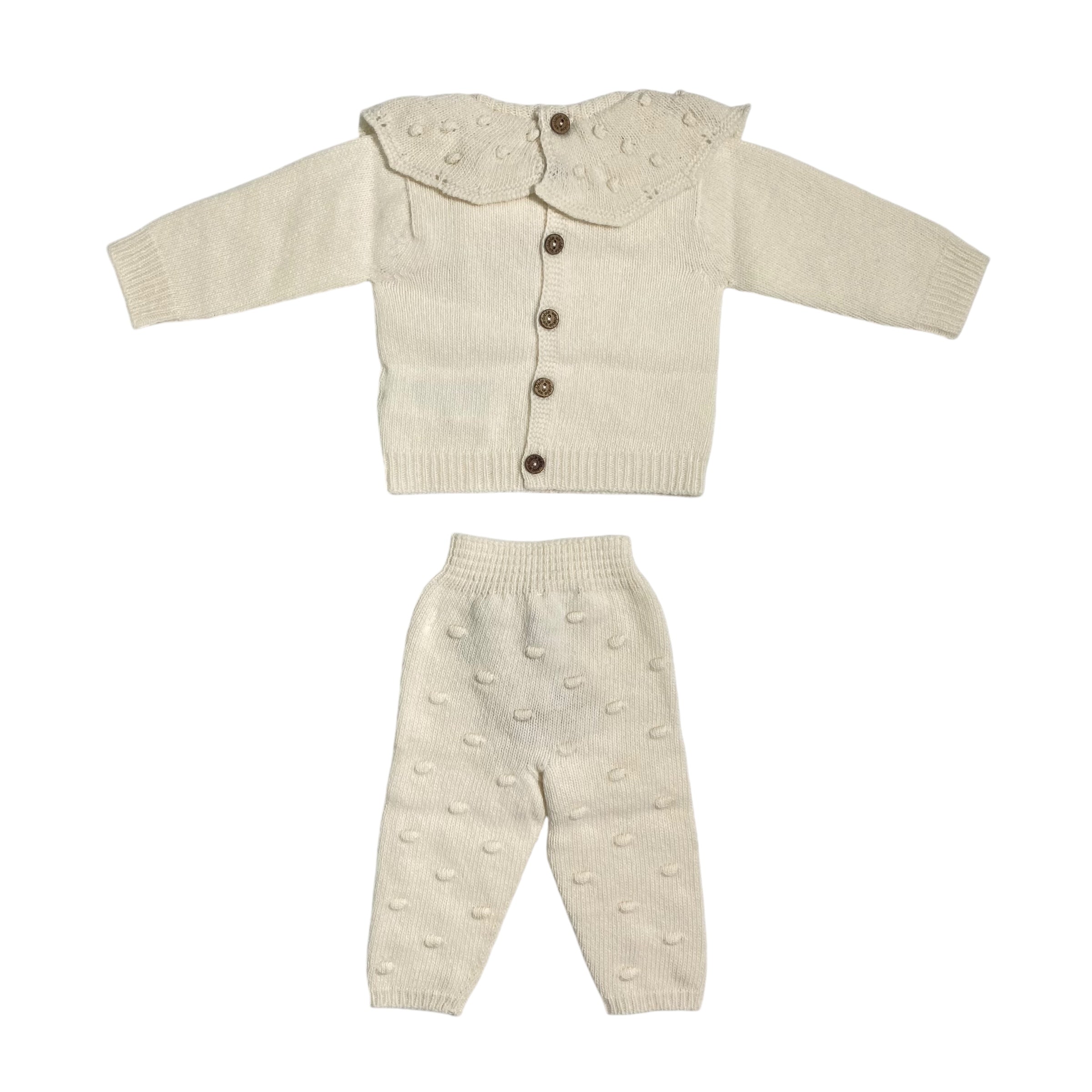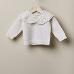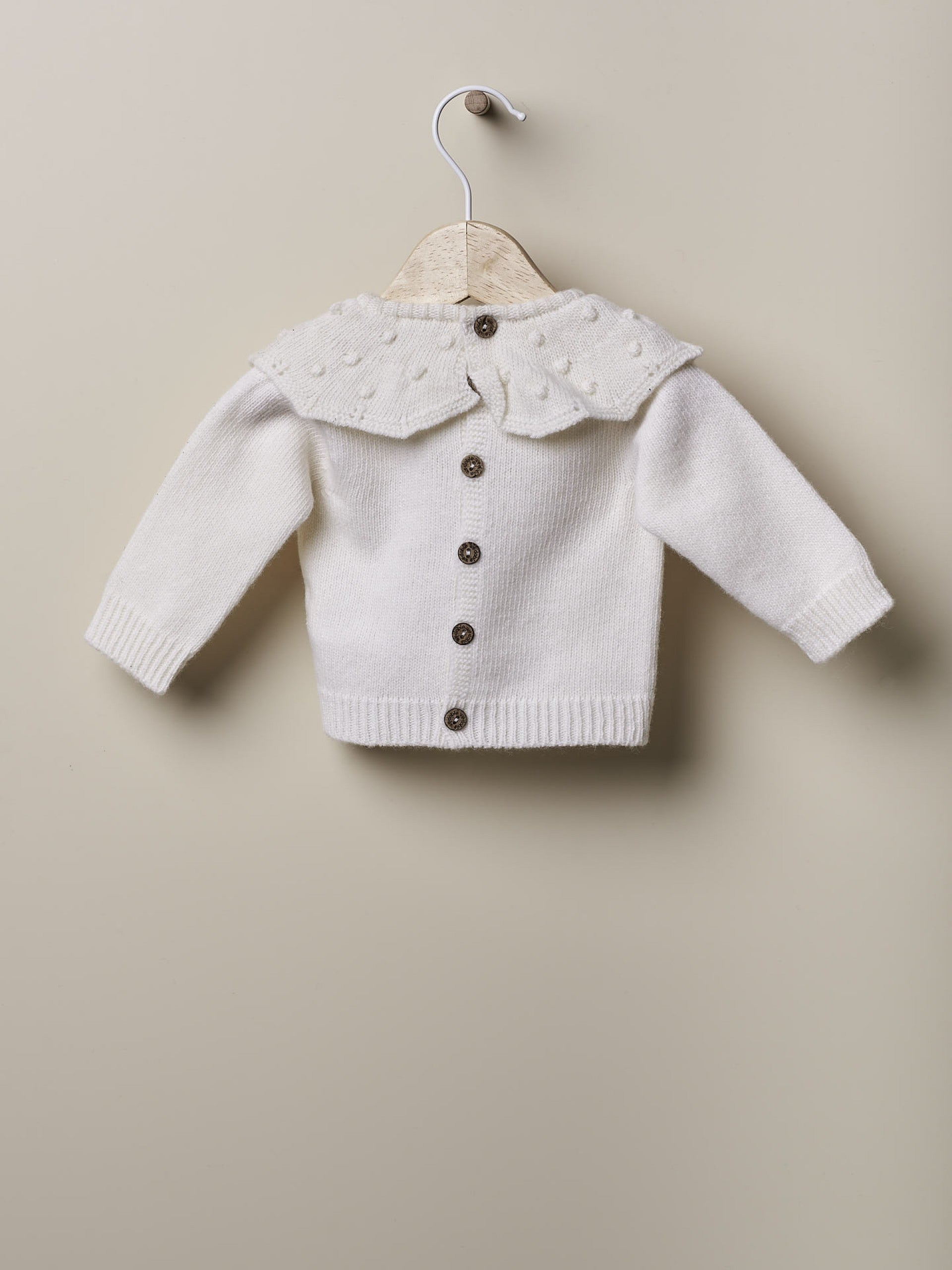 Maglione a maniche lunghe lavorato a maglia in morbida lana merino, ottimo per neonati, con ghettina a poise. Il maglione WINTER LOVE è lavorato a maglia con colletto in maglia e si chiude sul retro con bottoni in cocco. Realizzato con la tecnologia Wholegarment, questo capo è privo di cuciture per il massimo comfort del tuo bambino.