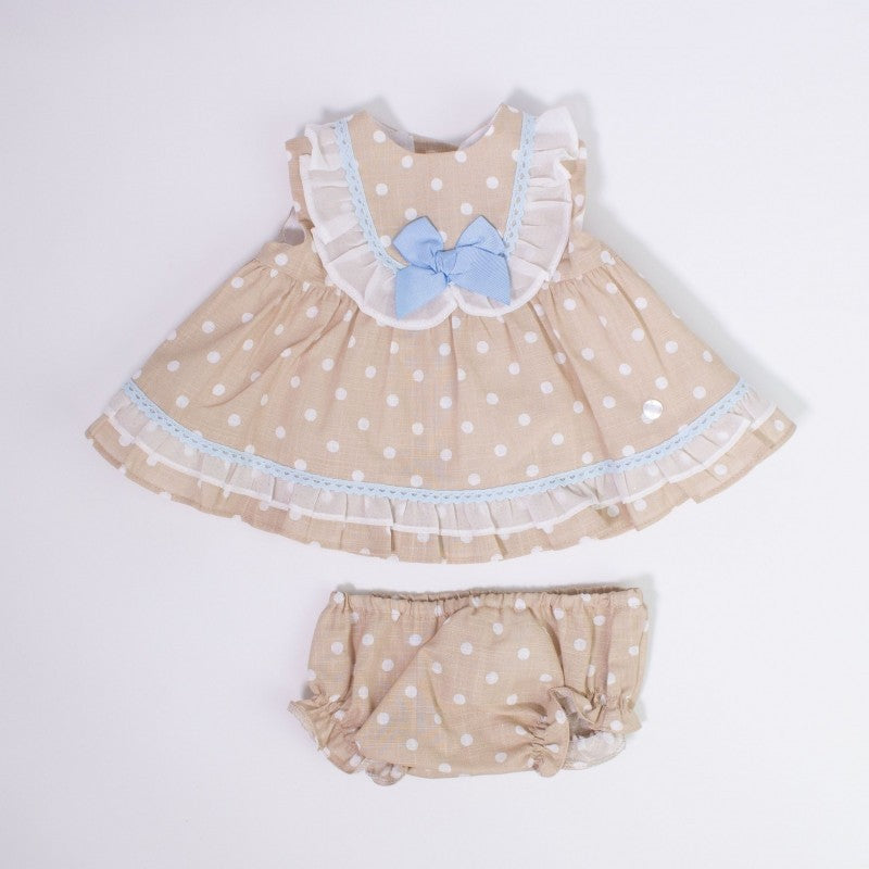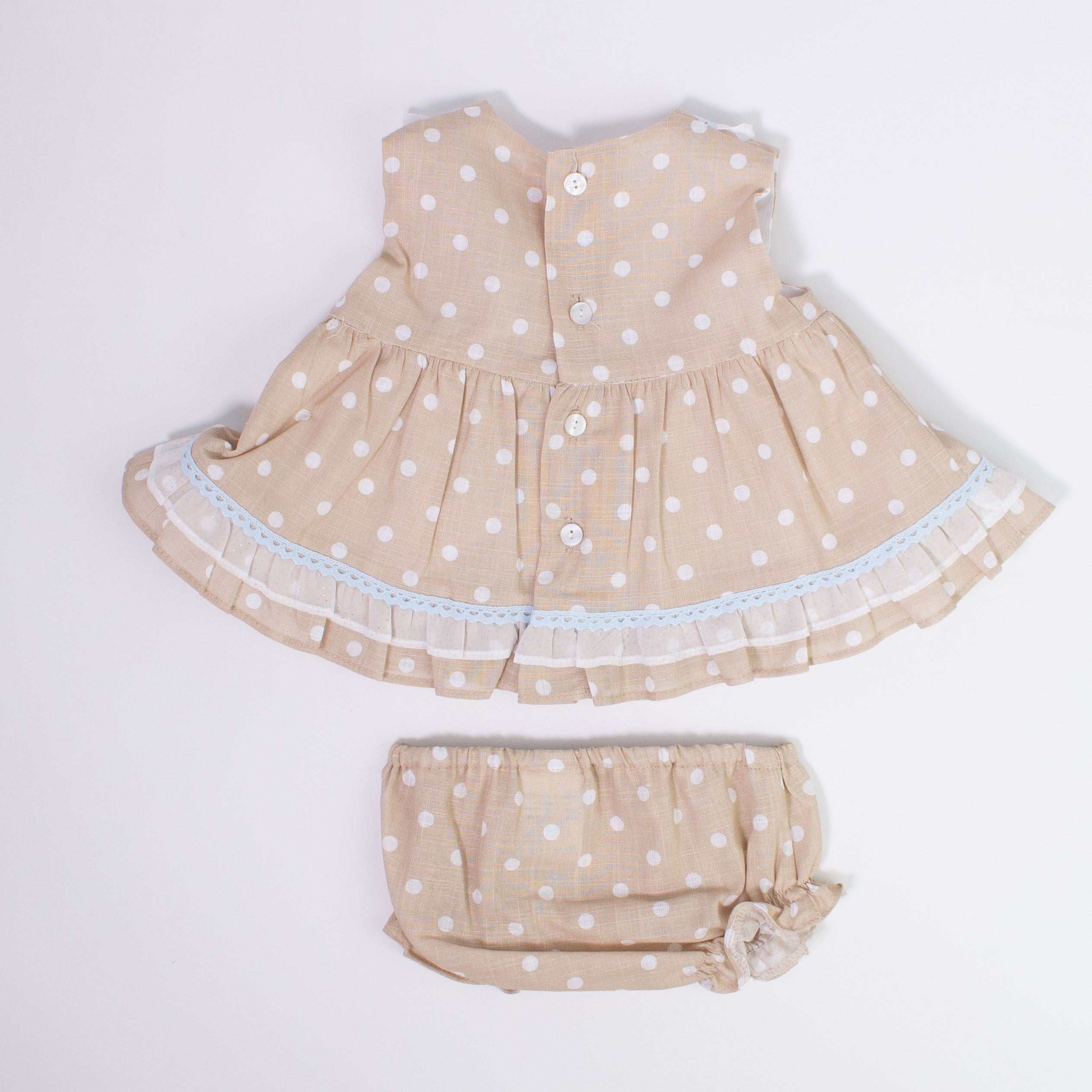 Vestito in Cotone Con Culotte Beige a Pois Bianco Neonata DEL SUR 0070 - DEL SUR - LuxuryKids